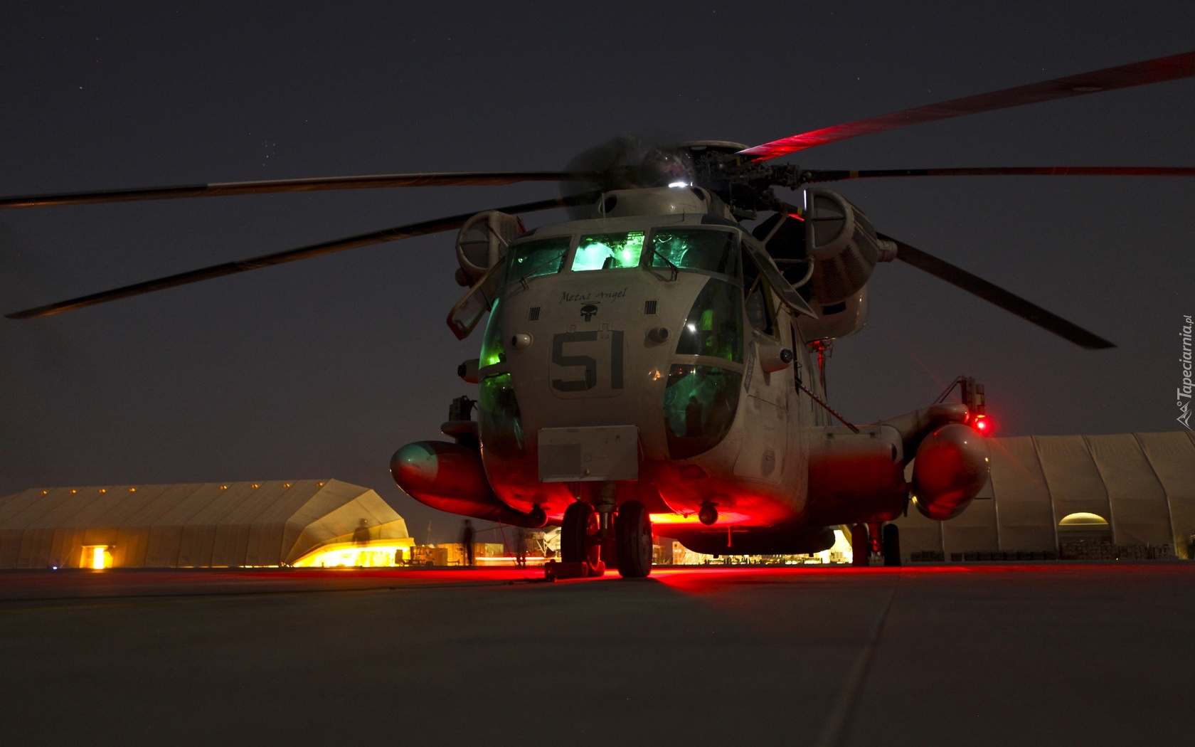 Edytor tapety: Helikopter CH-53D, Noc, Ogień