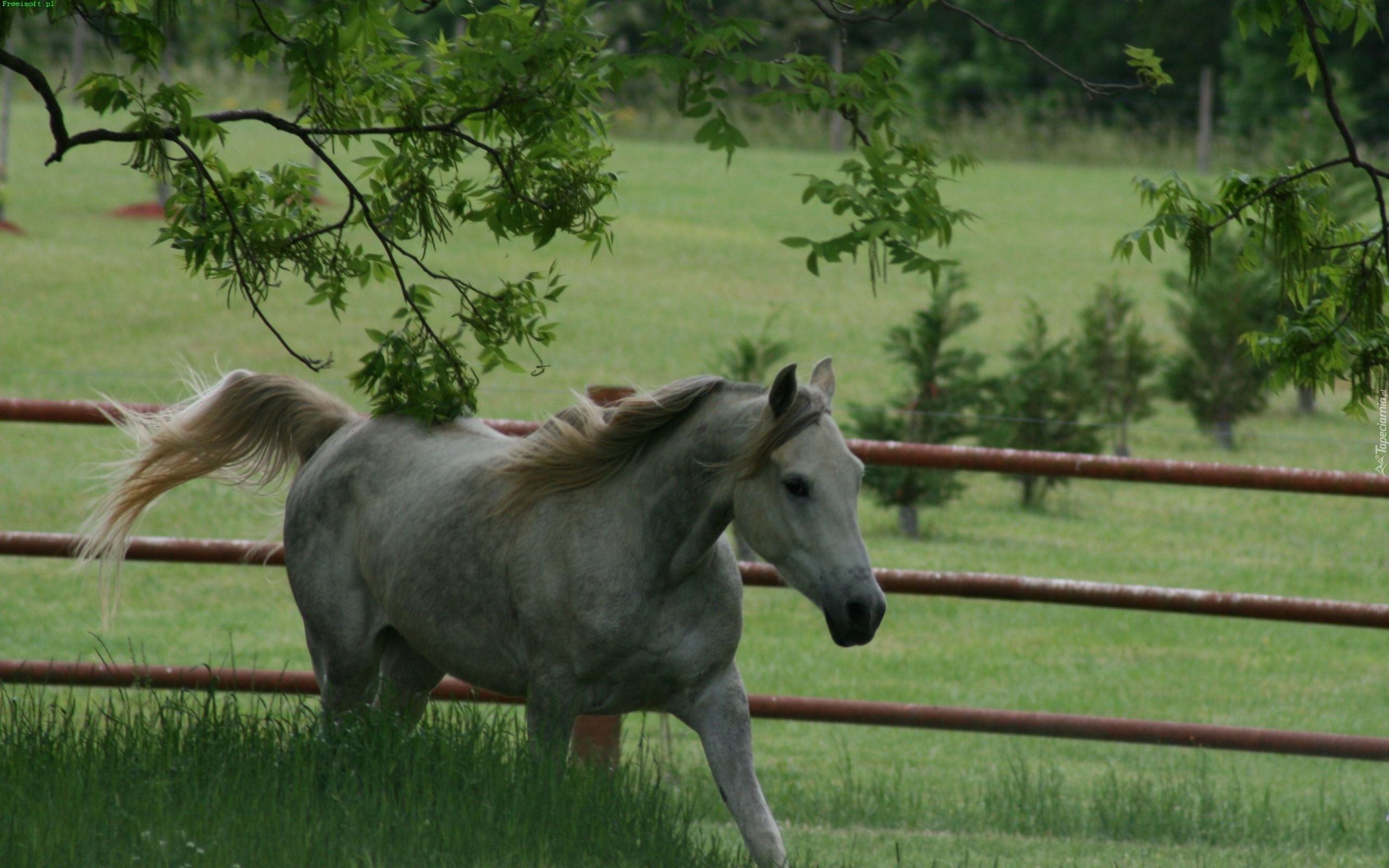 Edytor tapety: Koń, Siwek, Zagroda, Trawa