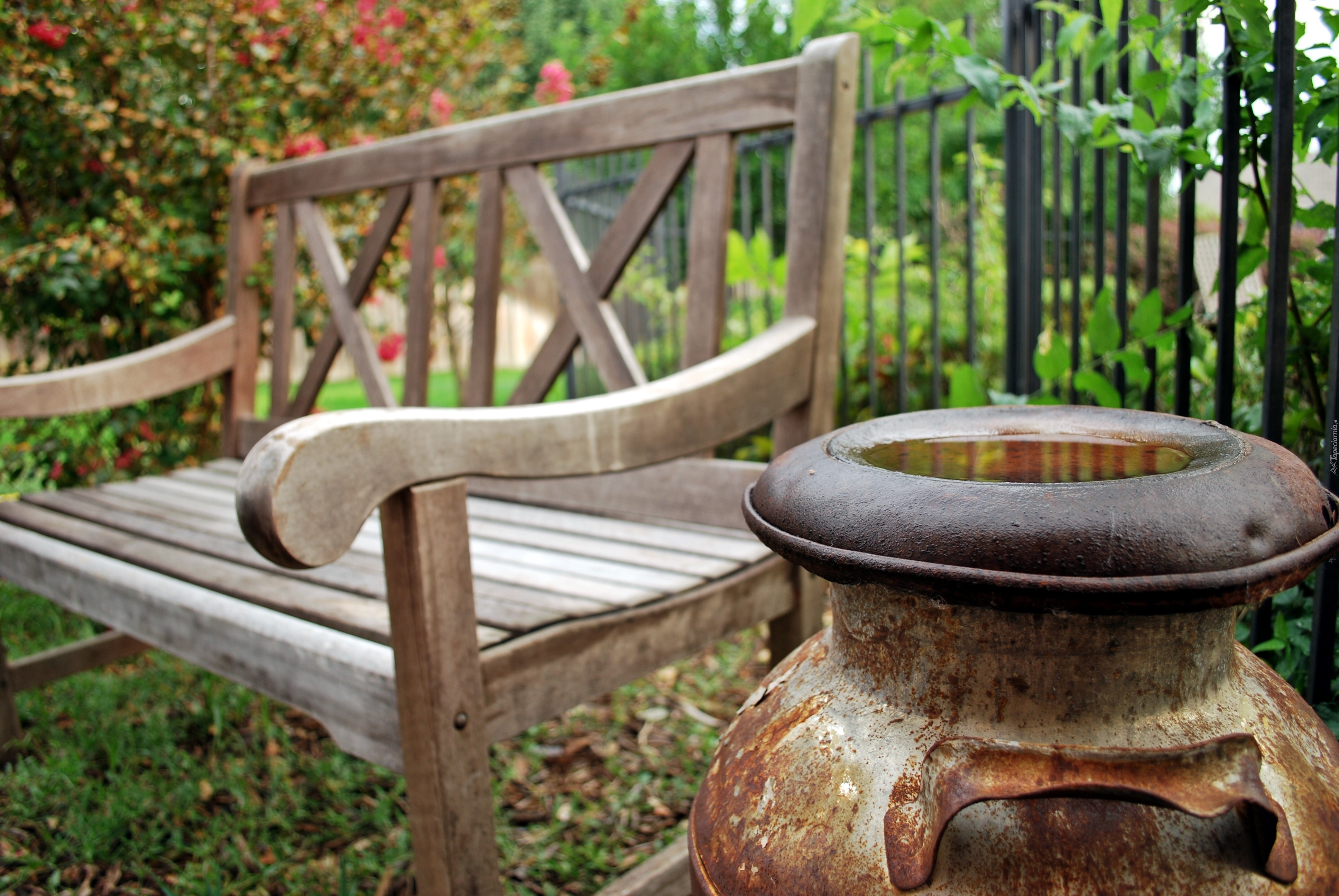 Edytor tapety: Ogród, Ławka, Poidełko, Rozmycie