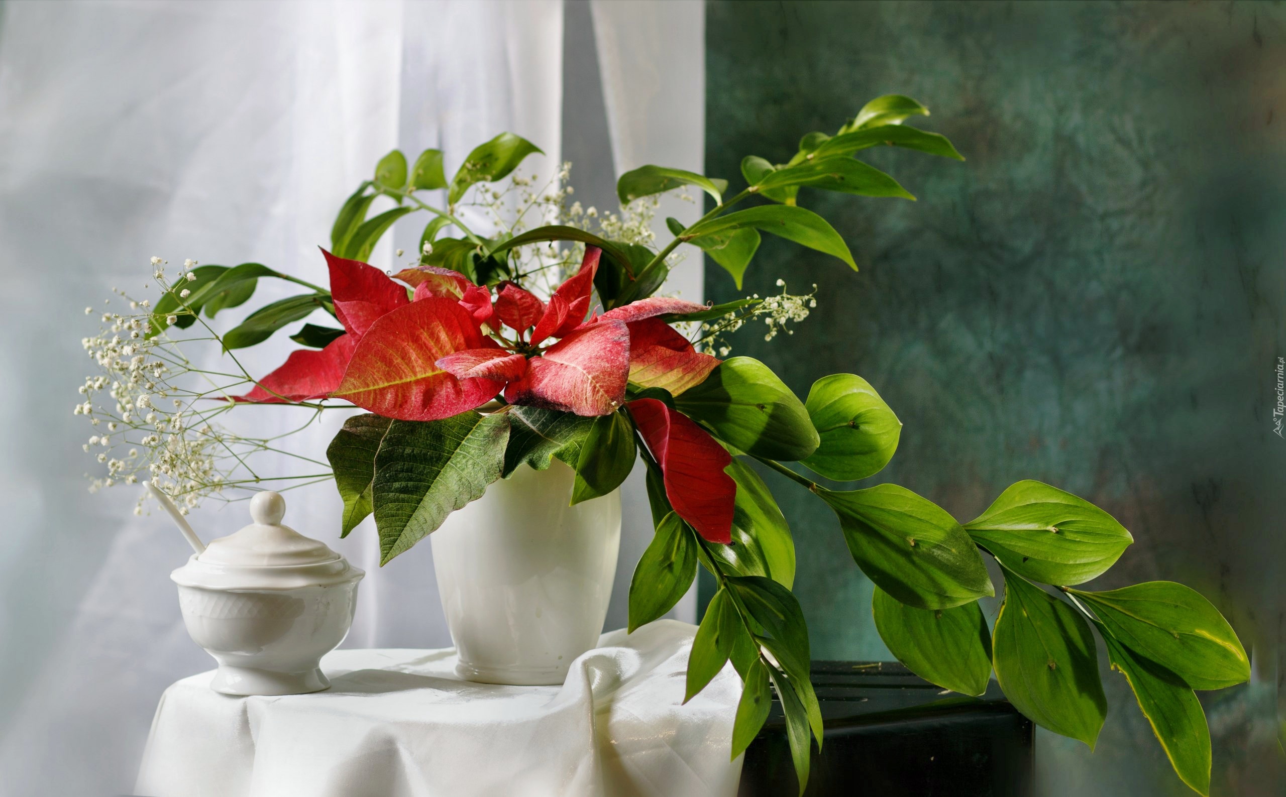 Edytor tapety: Wazon, Stolik, Kompozycja, Gwiazda betlejemska