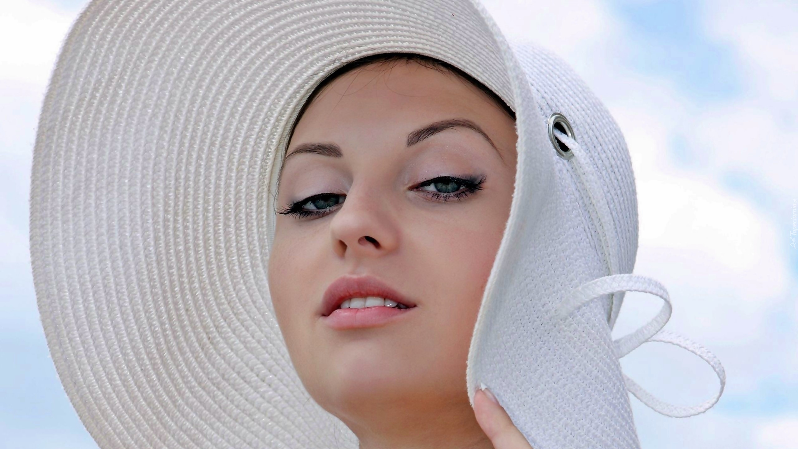 Edytor tapety: Piękna, Kobieta, Biały, Kapelusz, Zbliżenie