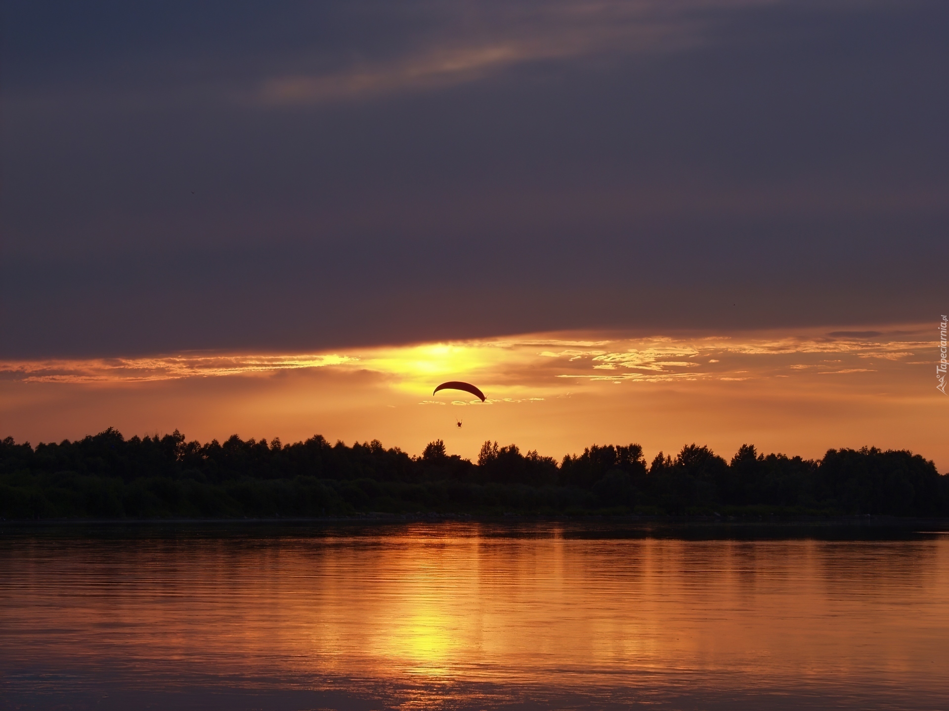 Edytor tapety: Zachód, Słońca, Jezioro, Lotniarz
