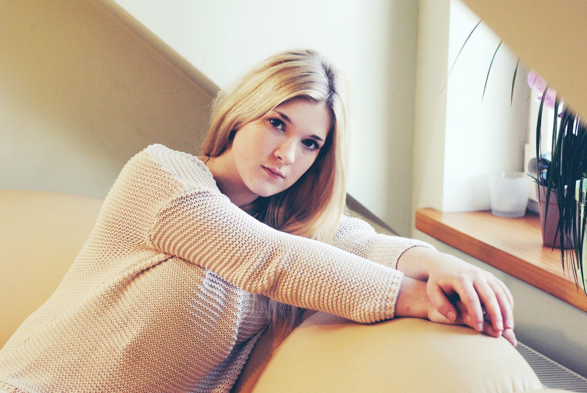 Edytor tapety: Kobieta, Blondynka, Sweter