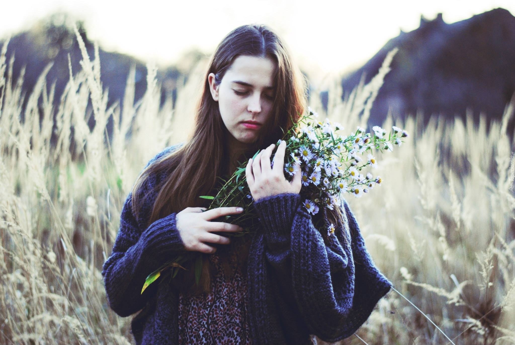 Edytor tapety: Kobieta, Szatynka, Bukiet, Kwiatów