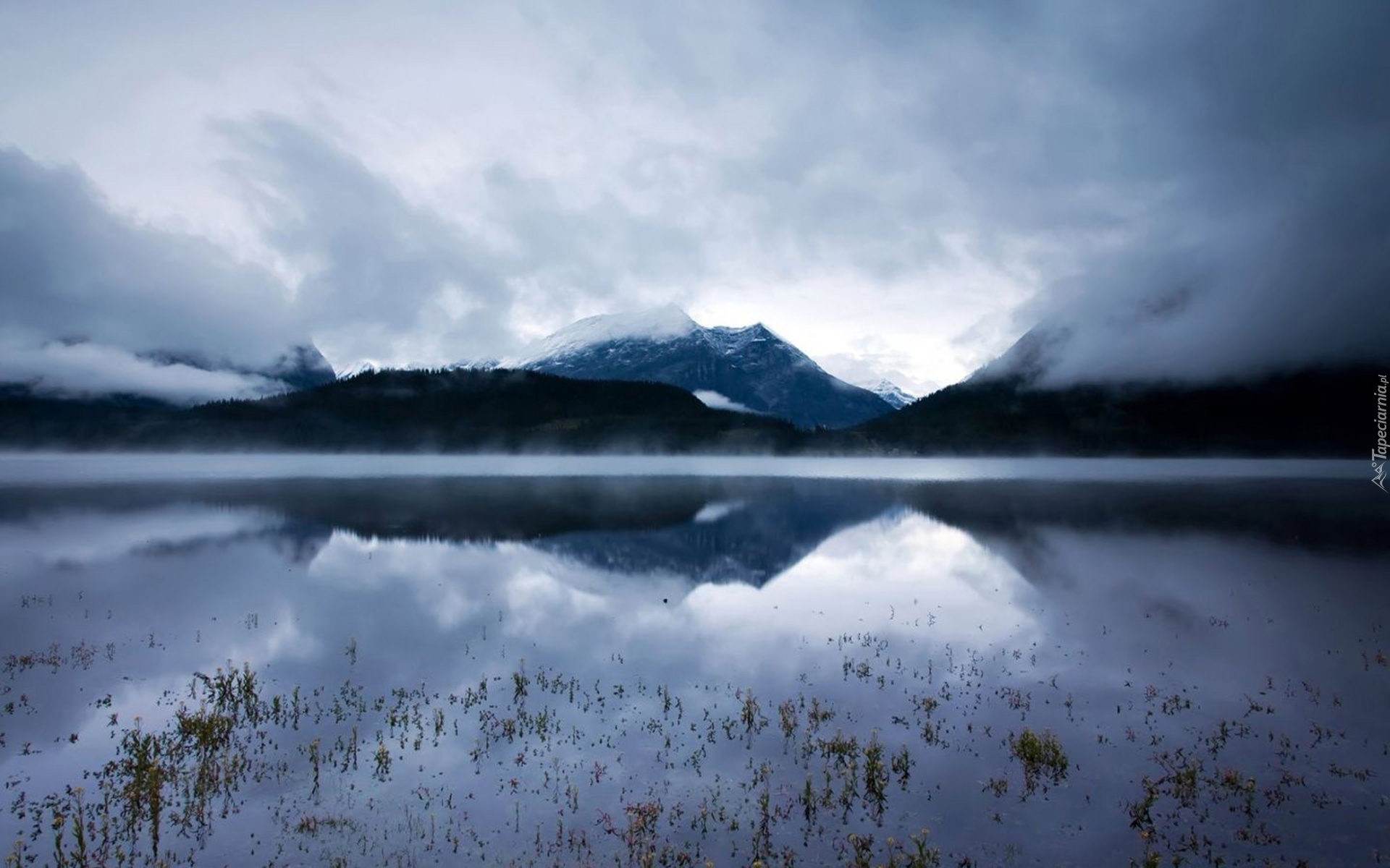 Edytor tapety: Jezioro, Mgła, Góry
