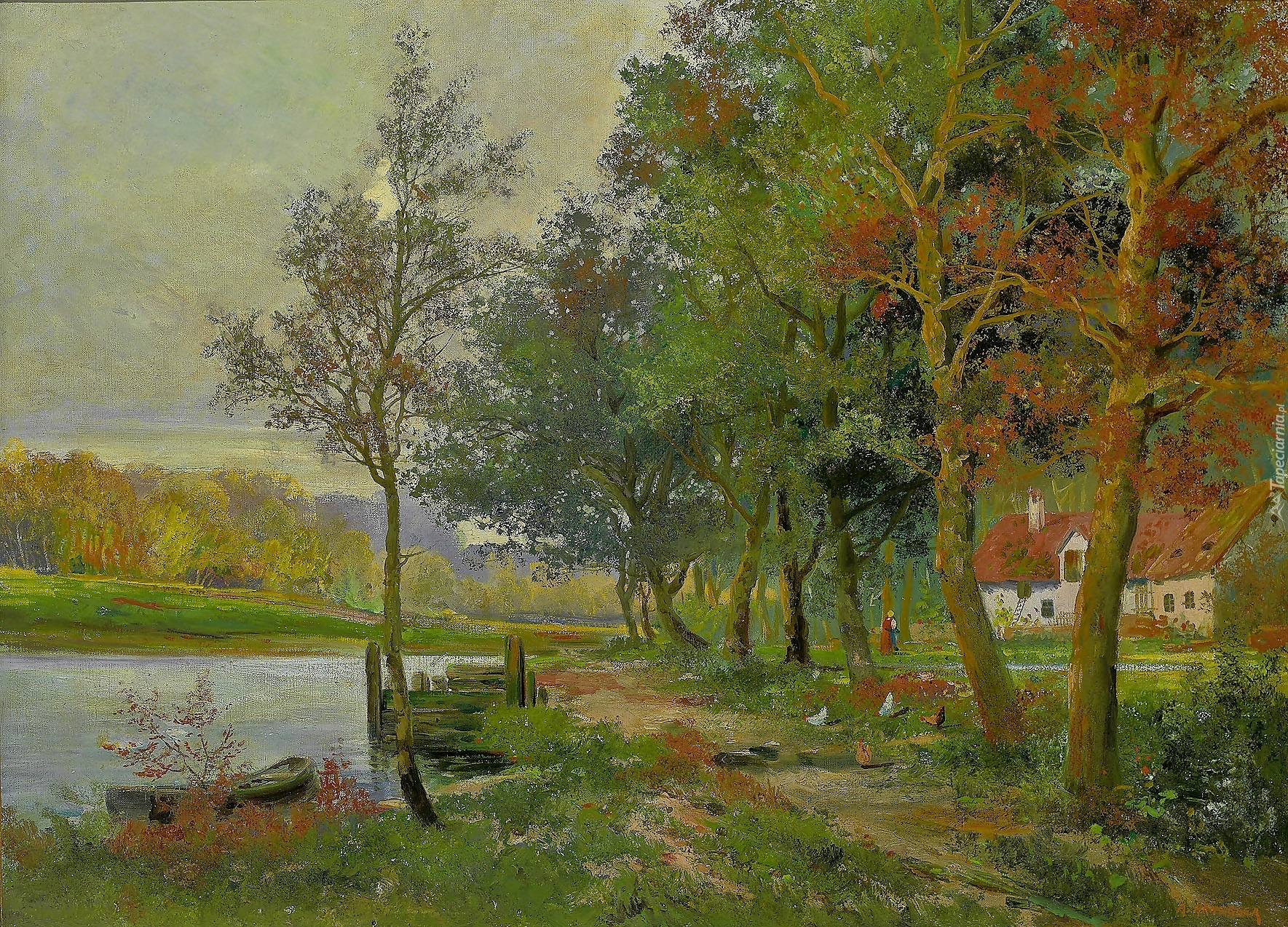 Edytor tapety: Alois, Arnegger, Las, Jezioro, Łódka, Dom, Kury