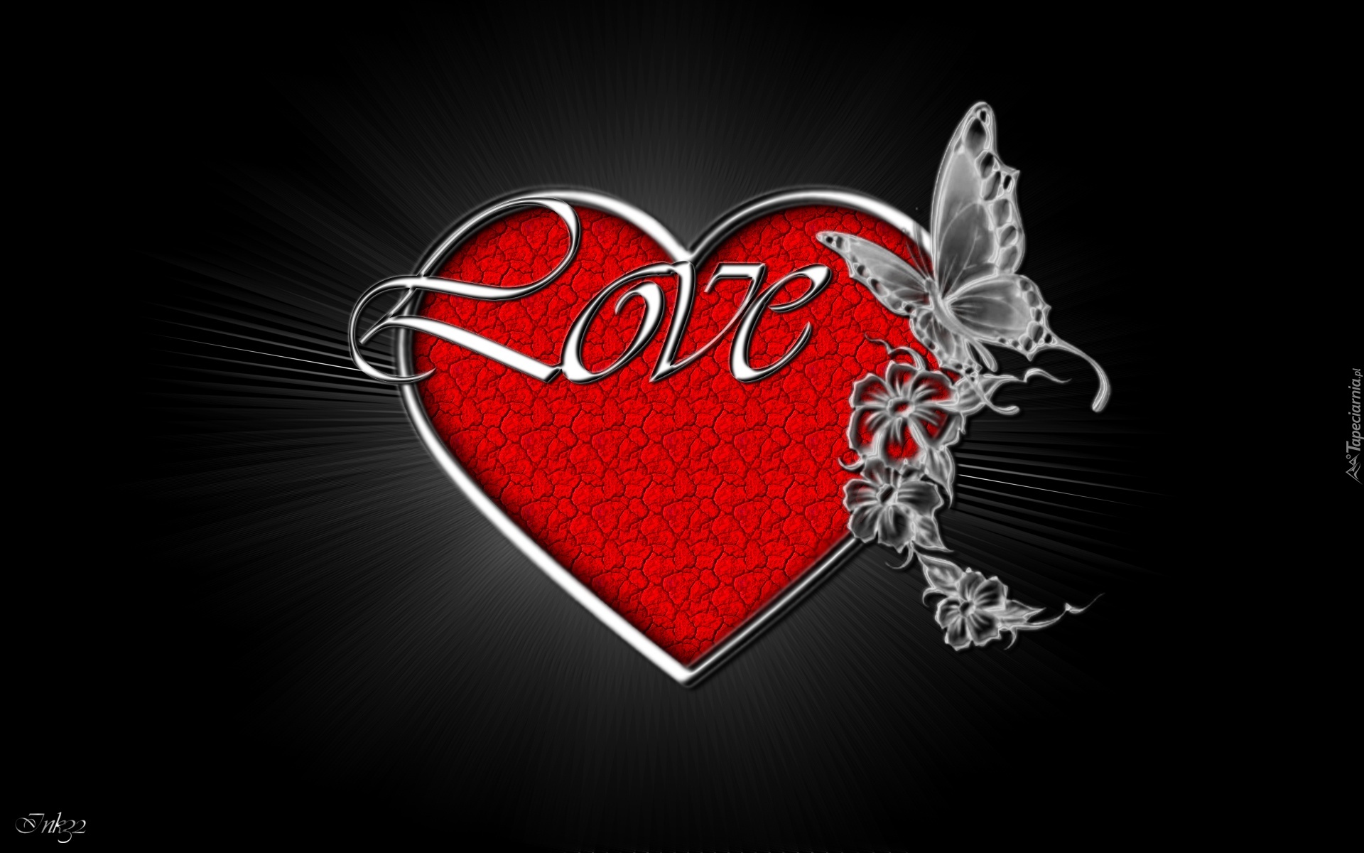 Edytor tapety: Serce, Motyl, Kwiaty