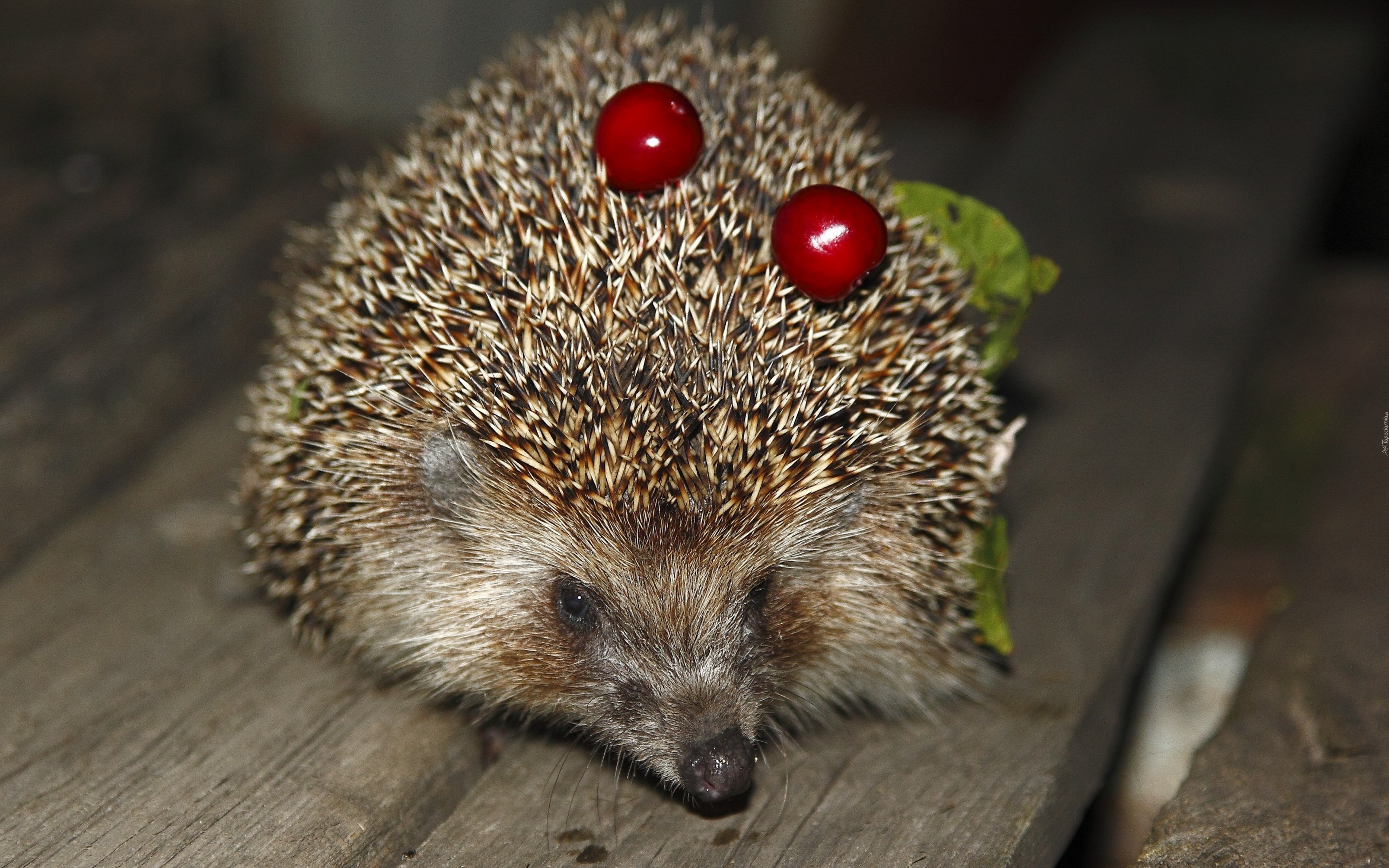 Edytor tapety: Jeż, Ławka, Owoce, Liście