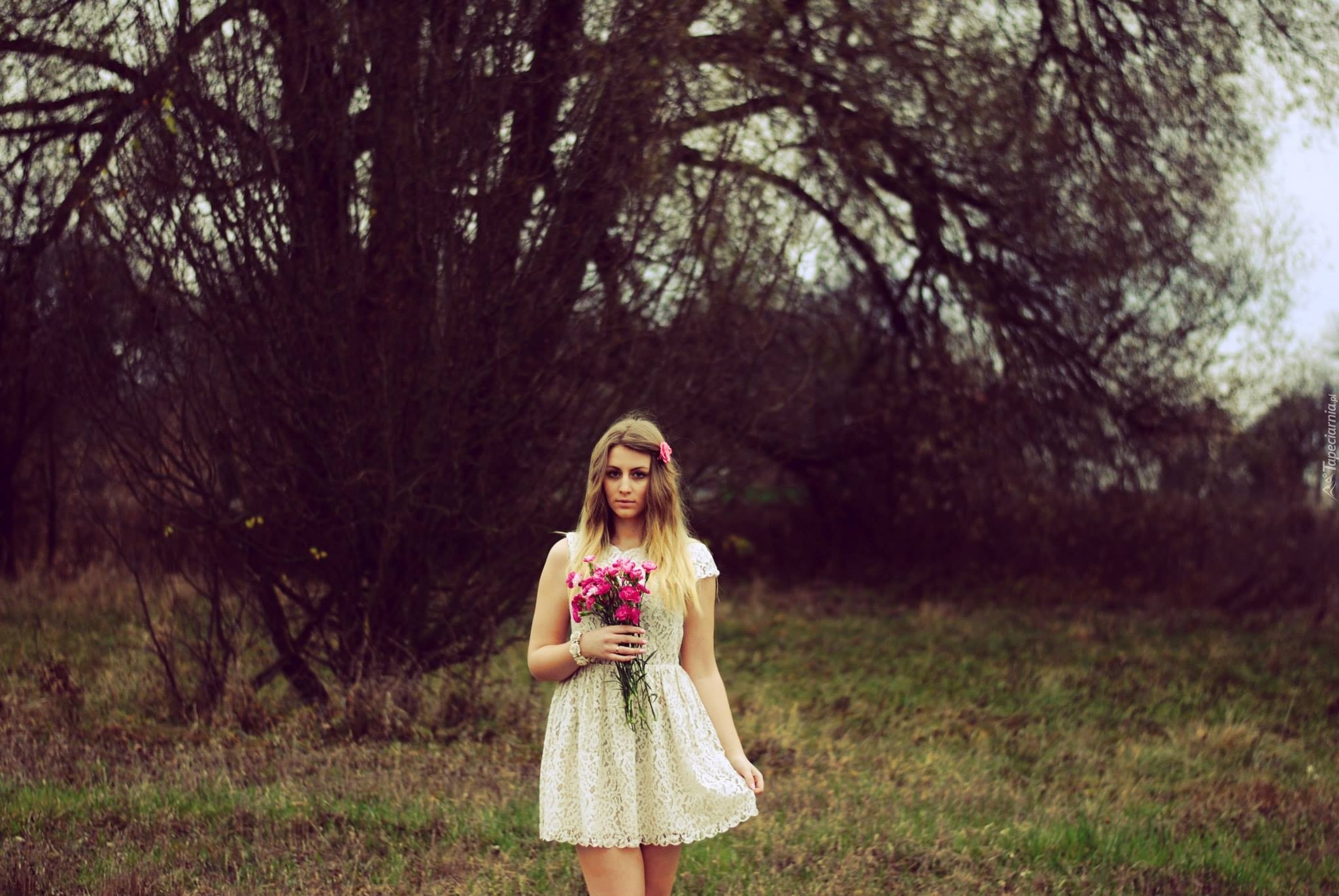 Edytor tapety: Kobieta, Blondynka, Bukiet, Różowych, Kwiatów