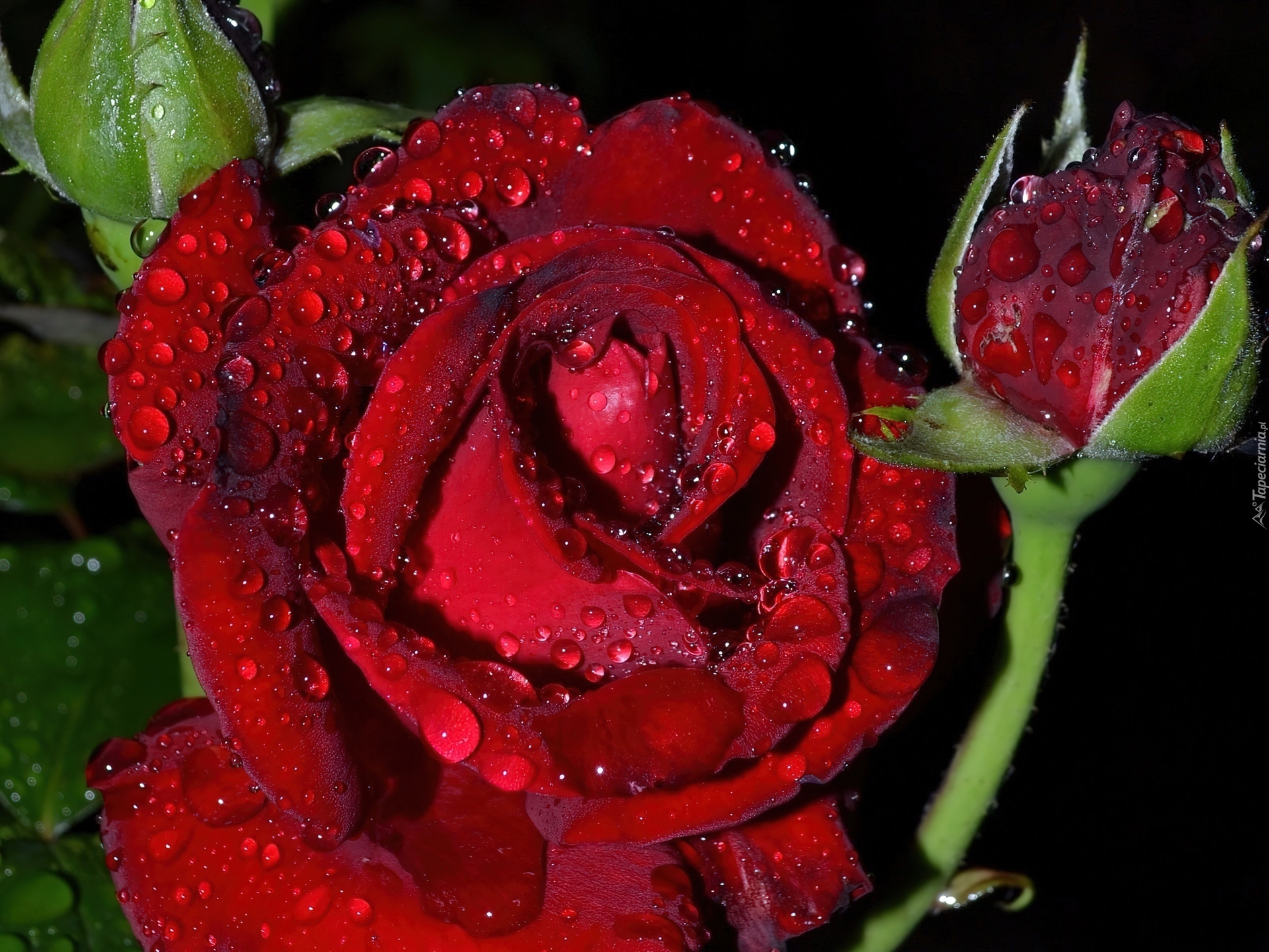 Edytor tapety: Czerwona, Róża, Pąk, Krople, Wody