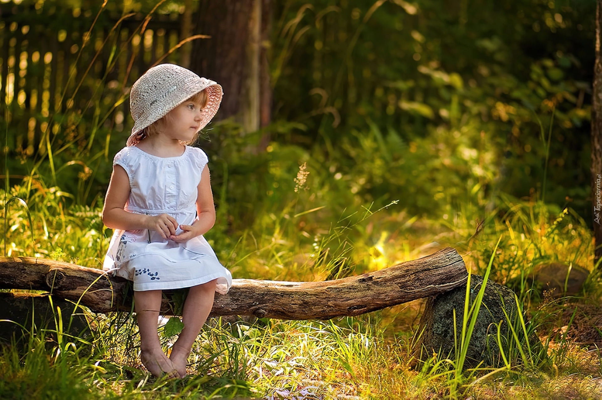 Edytor tapety: Dziewczynka, Kapelusz, Las, Zwalone, Drzewo