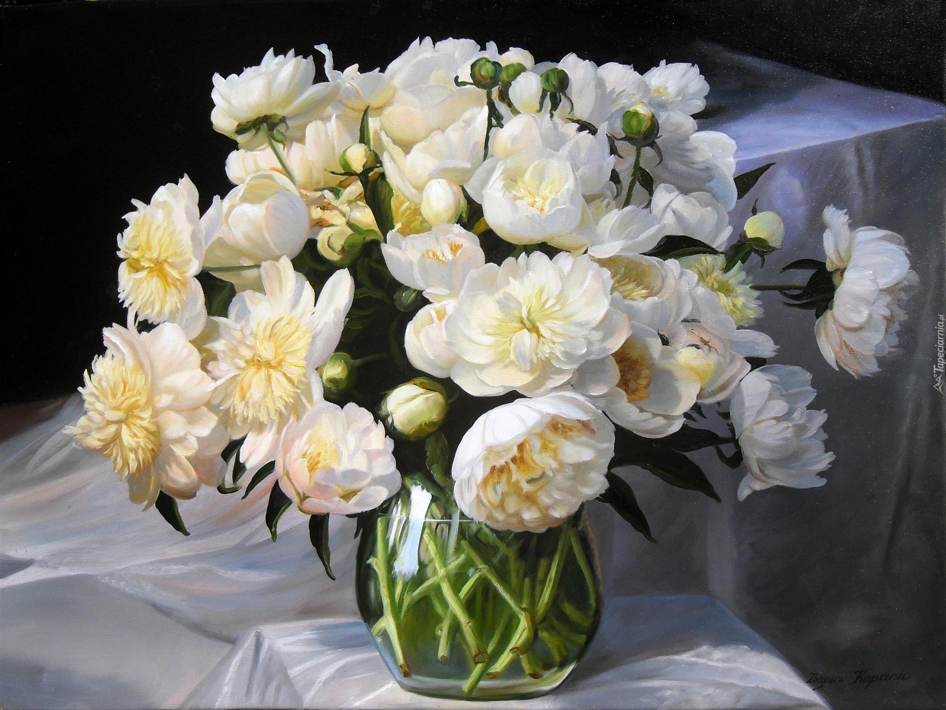 Edytor tapety: Malarstwo, Obraz, Piwonie, Bukiet, Zbigniew Kopania