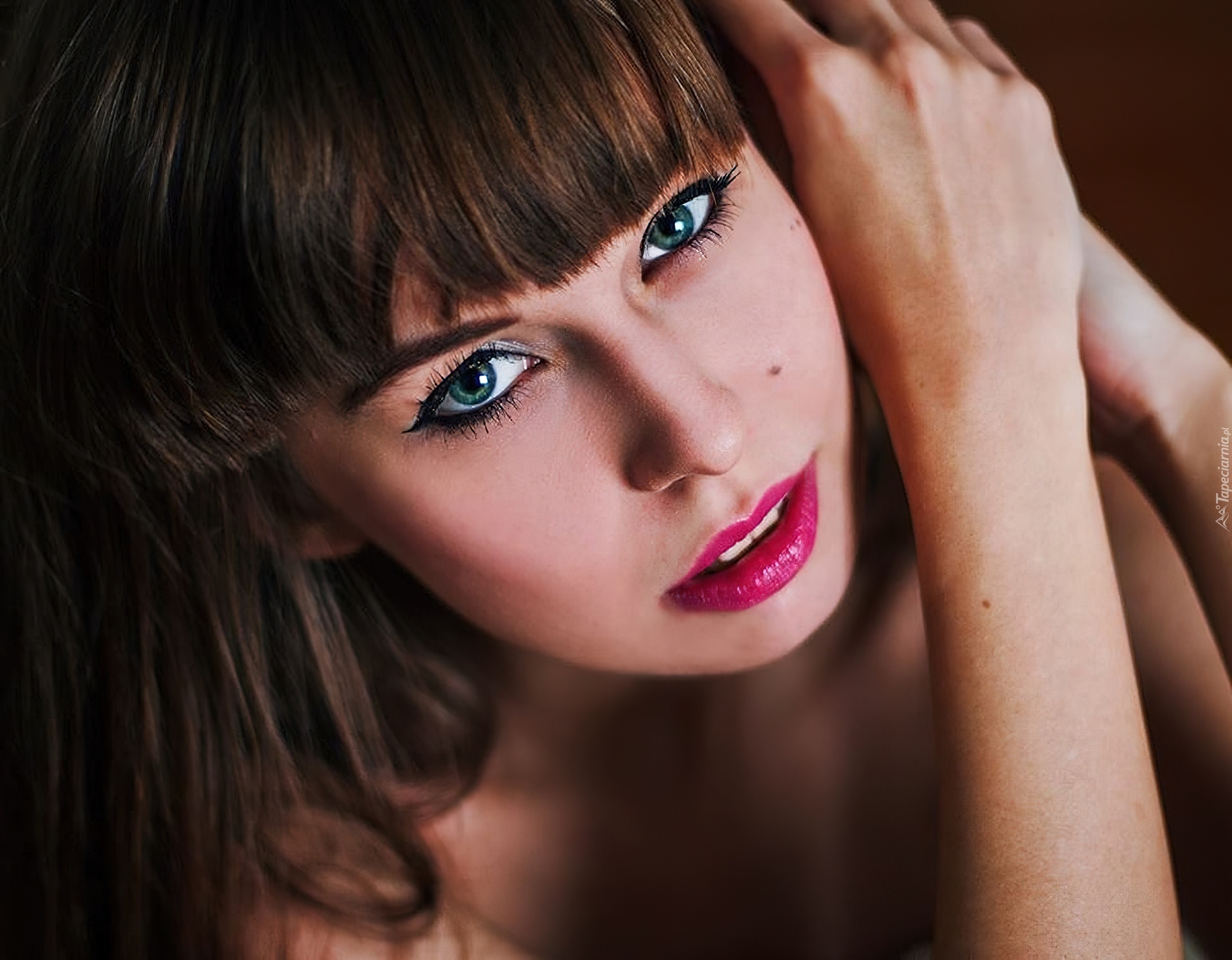 Edytor tapety: Kobieta, Szatynka, Makijaż, Zielone, Oczy
