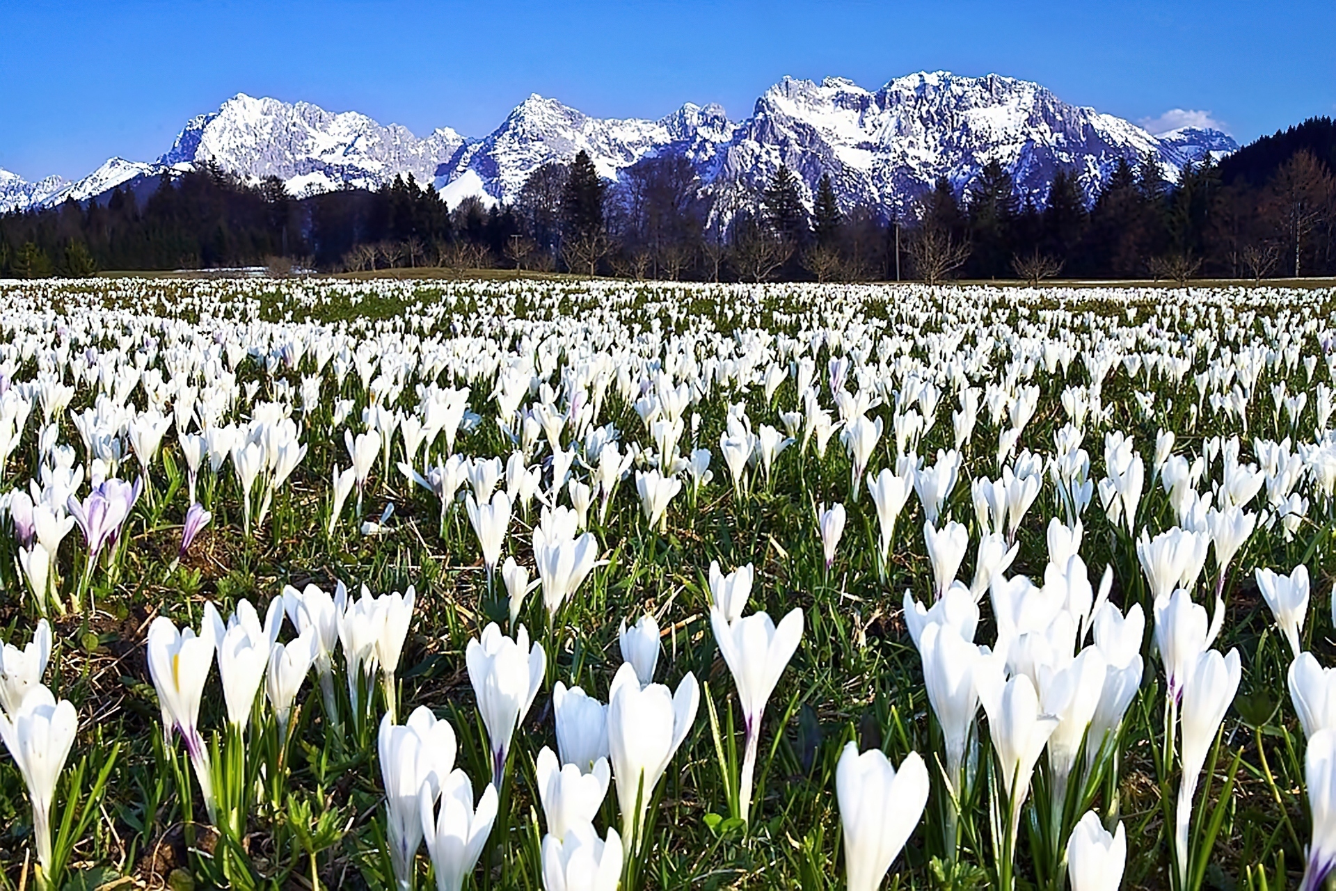 Edytor tapety: Ośnieżone, Szczyty, Łąka, Białych, Krokusów