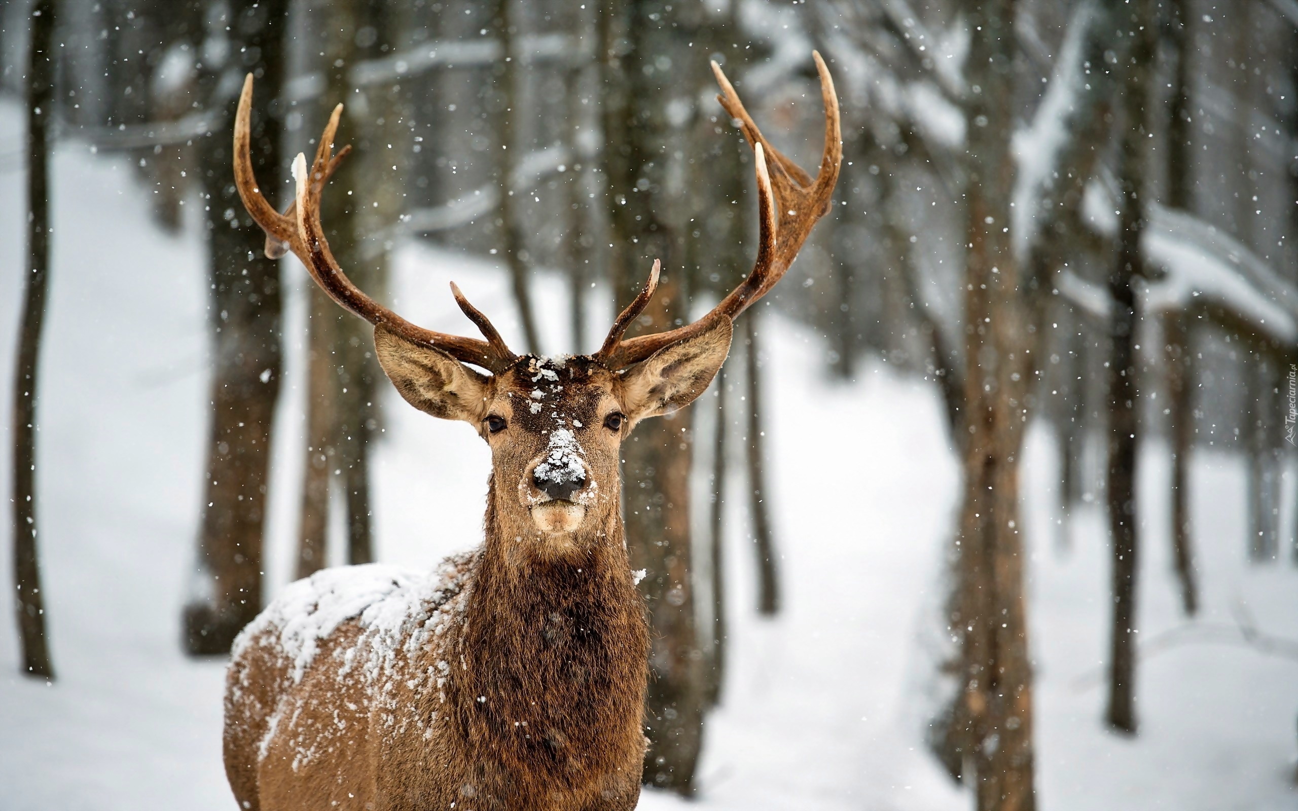 Edytor tapety: Jeleń, Las, Śnieg, Rozmycie
