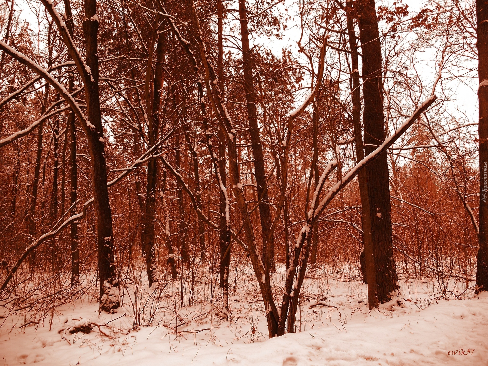 Edytor tapety: Las, Sepia, Zima