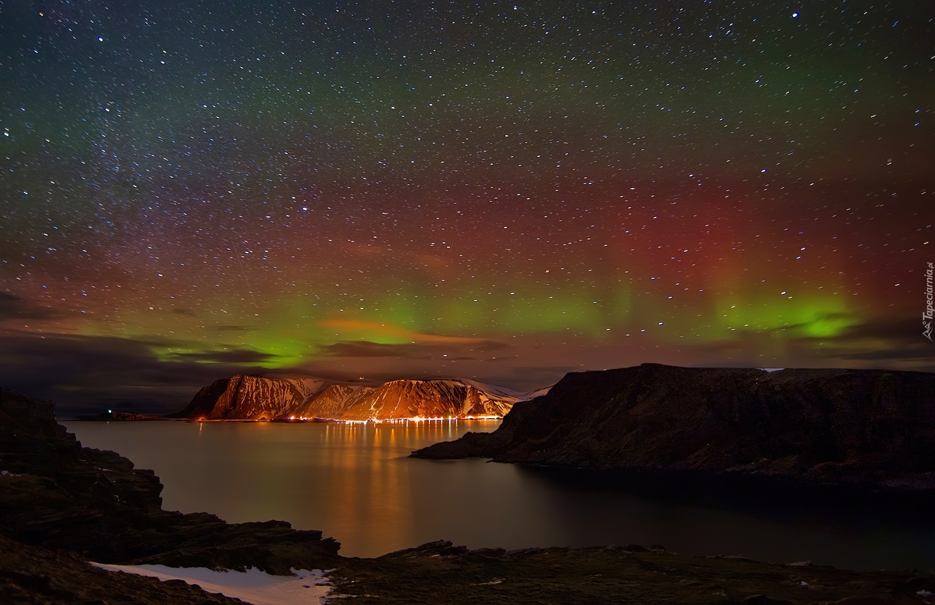Edytor tapety: Zorza, Polarna, Góry, Noc