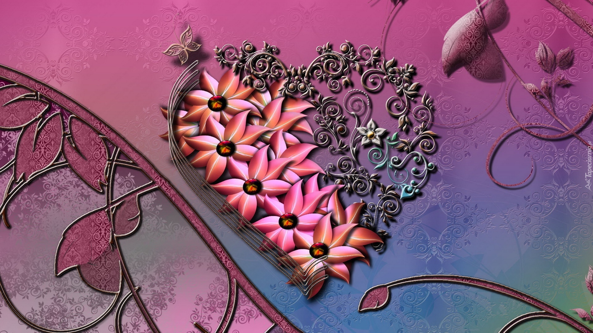 Edytor tapety: Walentynki, Serce, Kwiaty, Witraż