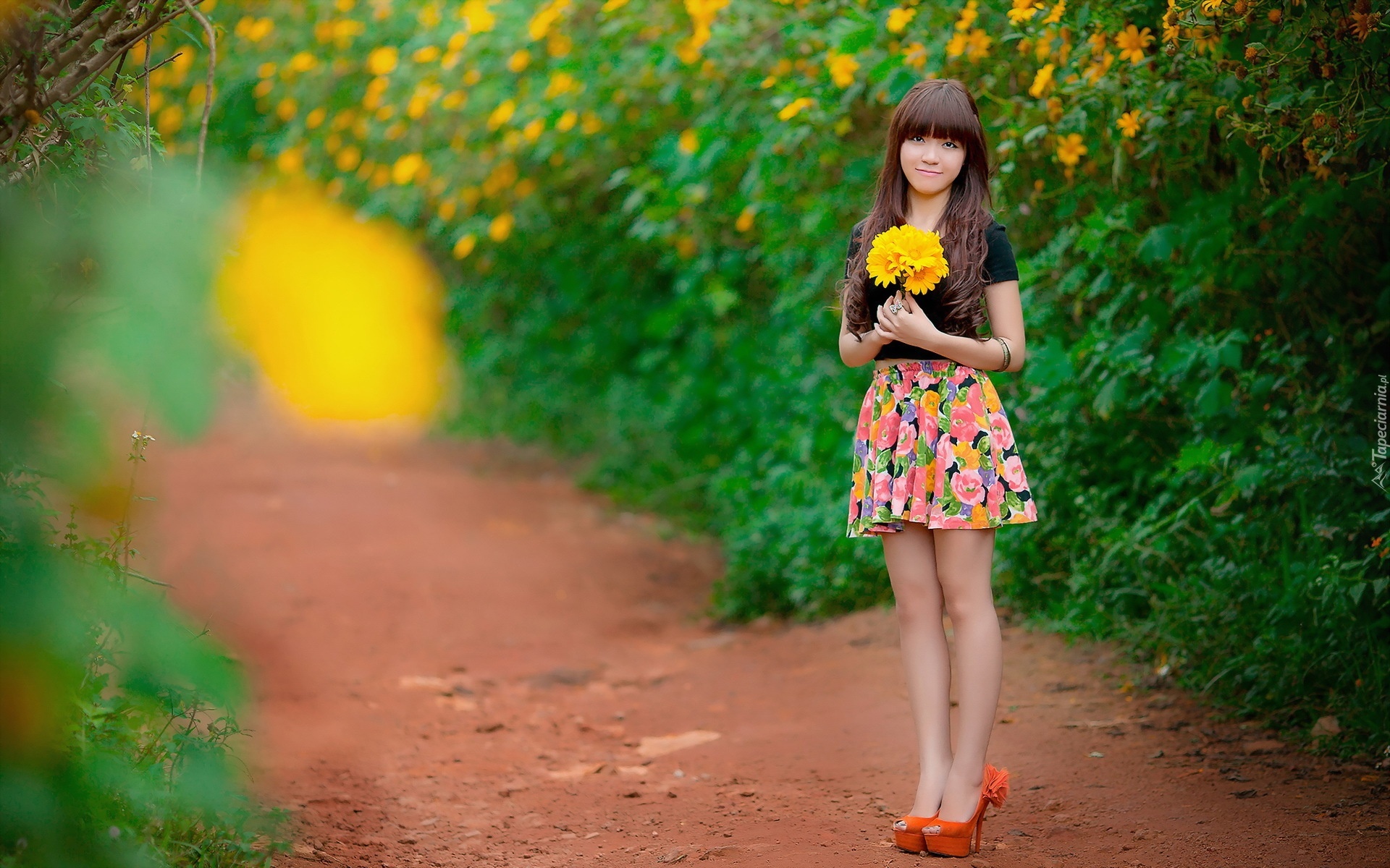 Edytor tapety: Kobieta, Bukiet, Żółte, Gerbery, Ogród