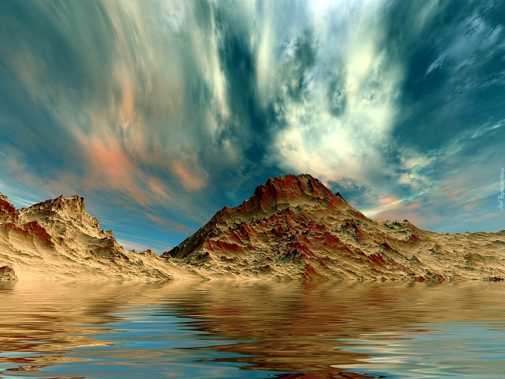 Edytor tapety: Góry, Morze, Obłoki, Odbicie
