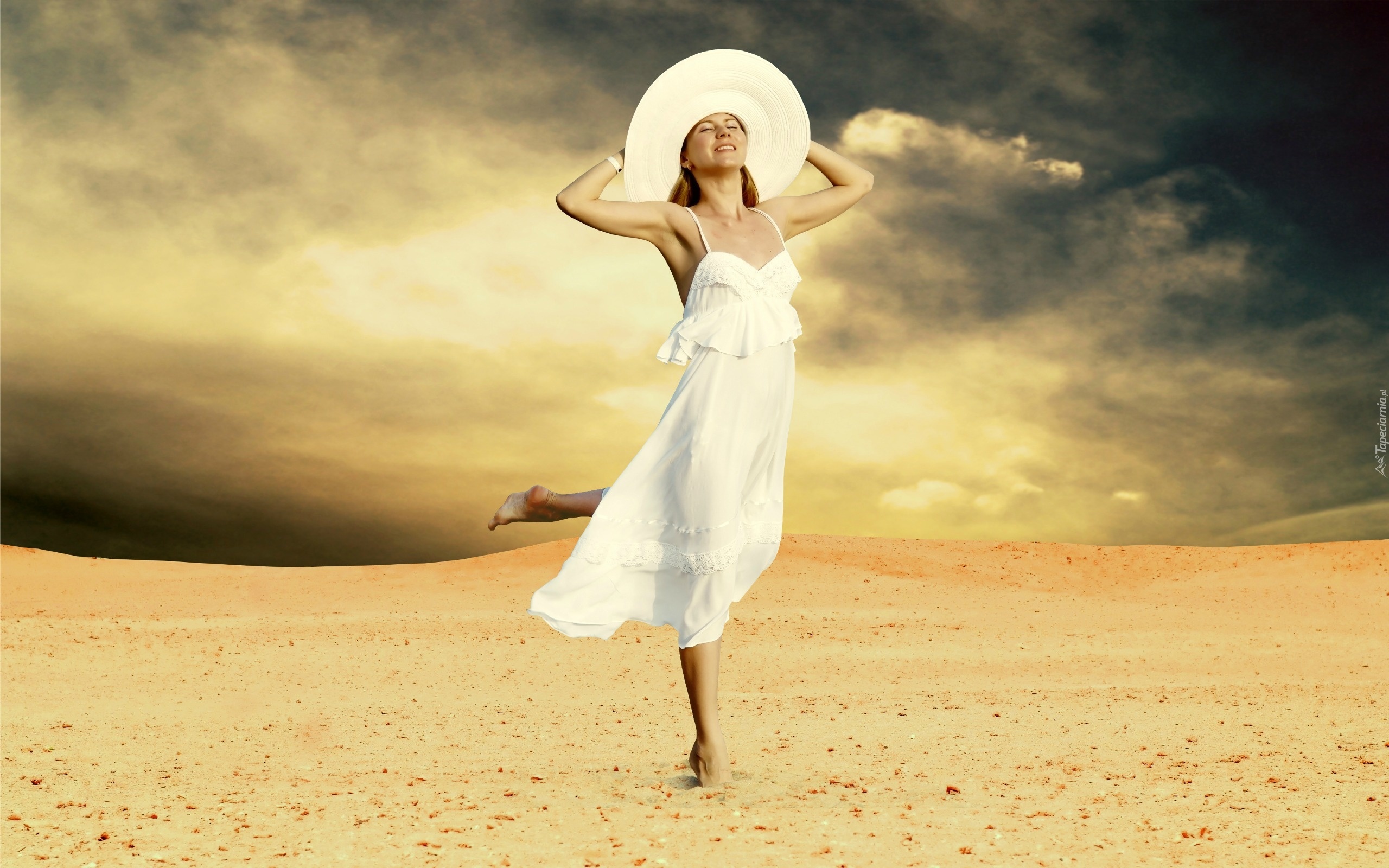 Edytor tapety: Kobieta, Kapelusz, Pustynia, Chmury