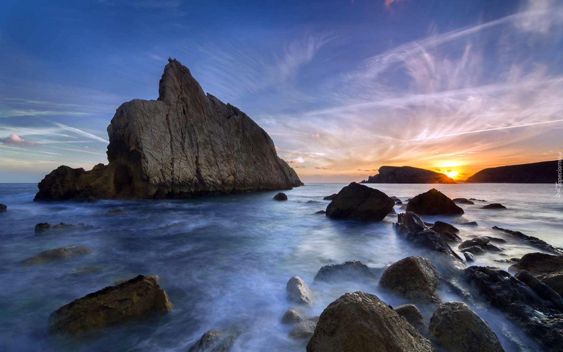 Edytor tapety: Morze, Skały, Zachód Słońca