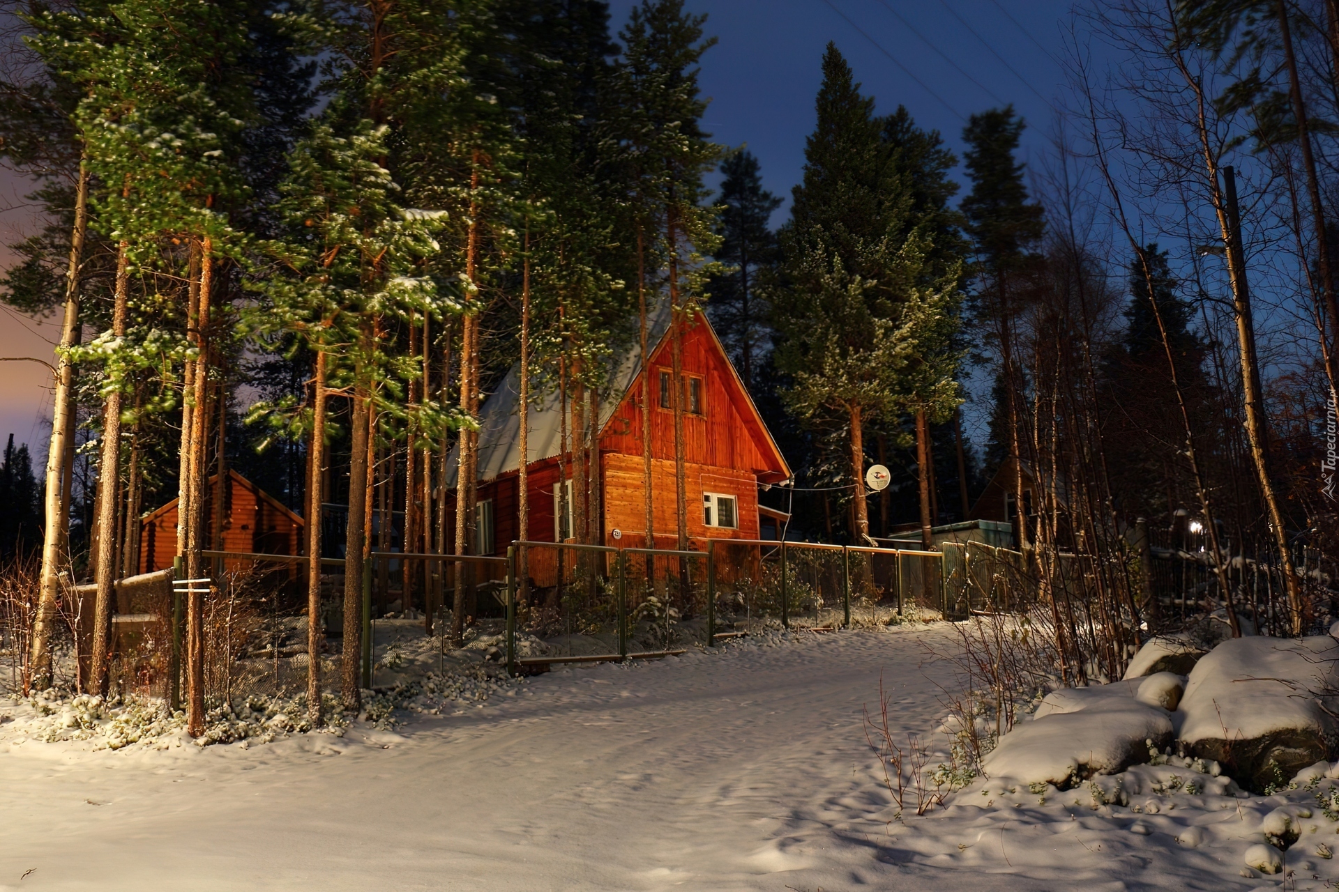 Edytor tapety: Las, Droga, Dom, Noc, Śnieg, Zima