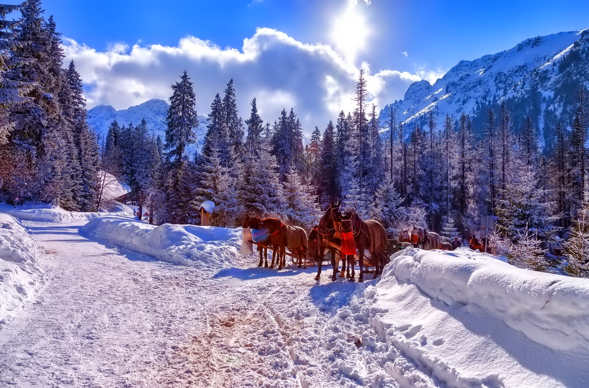 Edytor tapety: Góry, Zima, Konie, Zaprzęg, Tatry, Polska