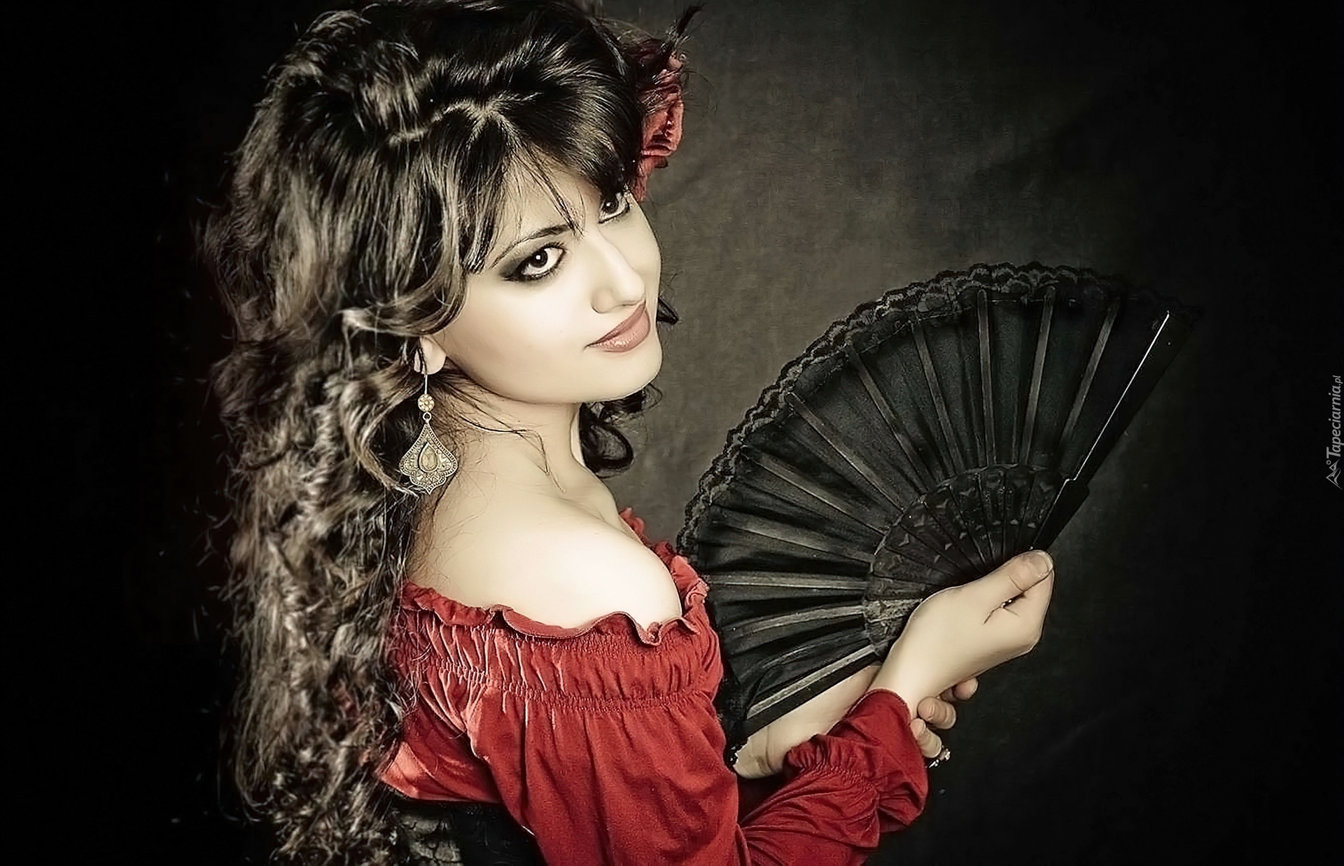 Edytor tapety: Brunetka, Kolczyk, Makijaż, Wachlarz