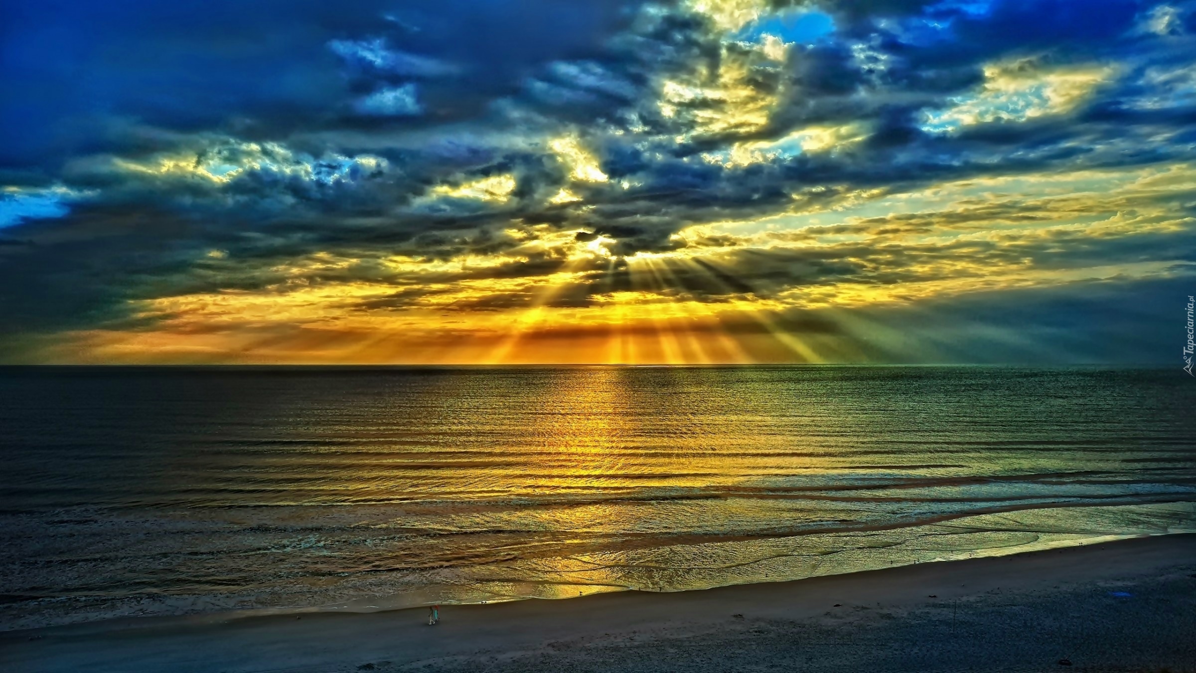 Edytor tapety: Zachmurzone, Niebo, Promienie, Słońca, Morze