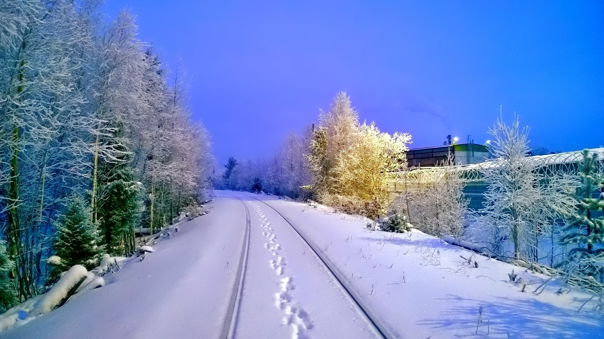 Edytor tapety: Zima, Kolejowy, Tor, Drzewa
