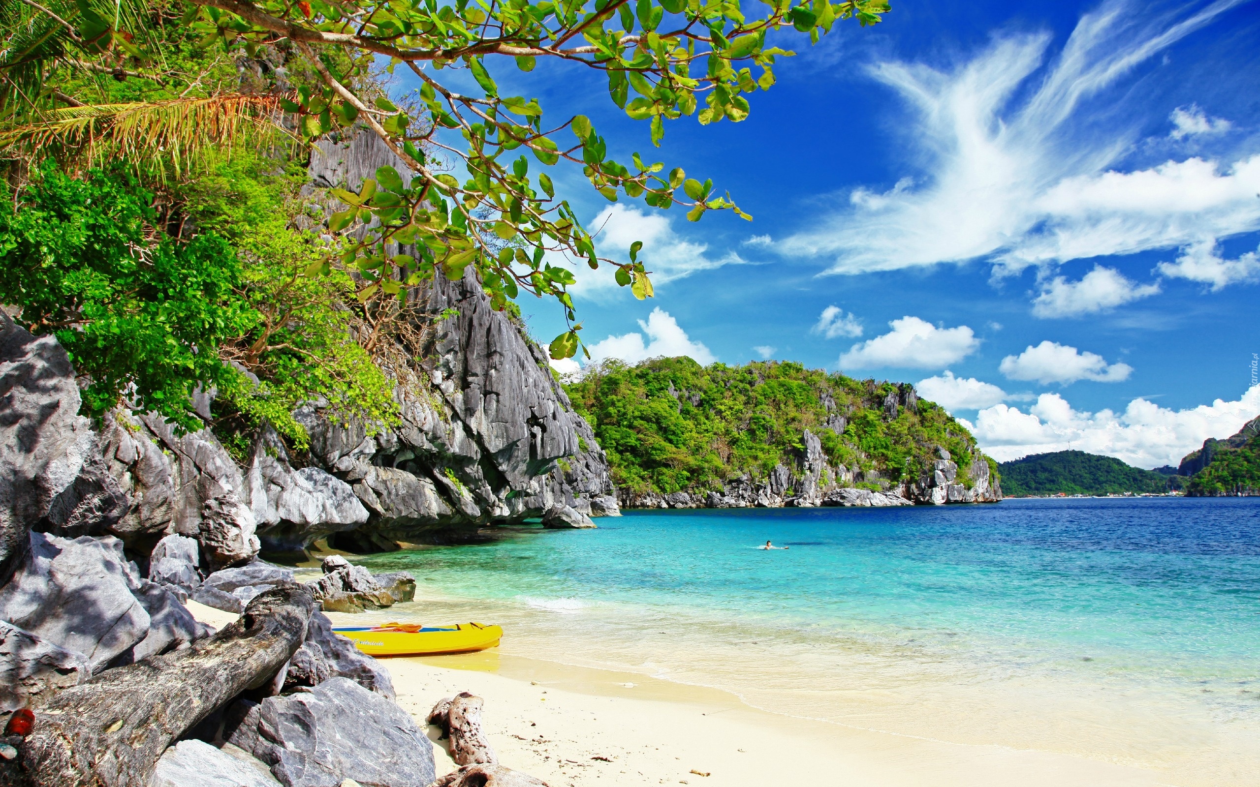Edytor tapety: Wybrzeże, Skały, Plaża, Góry, Łódka, Mężczyzna