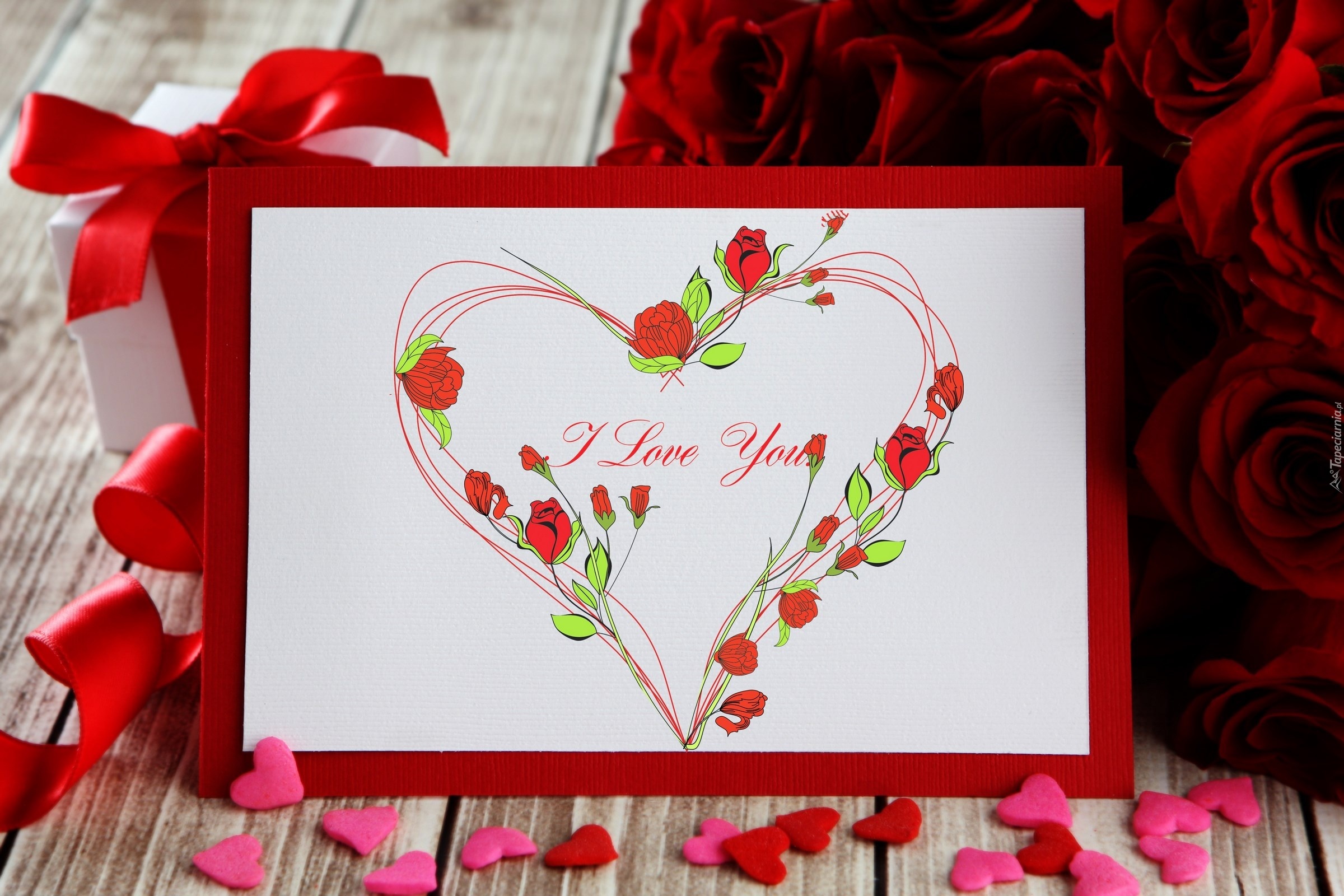 Edytor tapety: Róże, Kartka, Serce, Walentynki