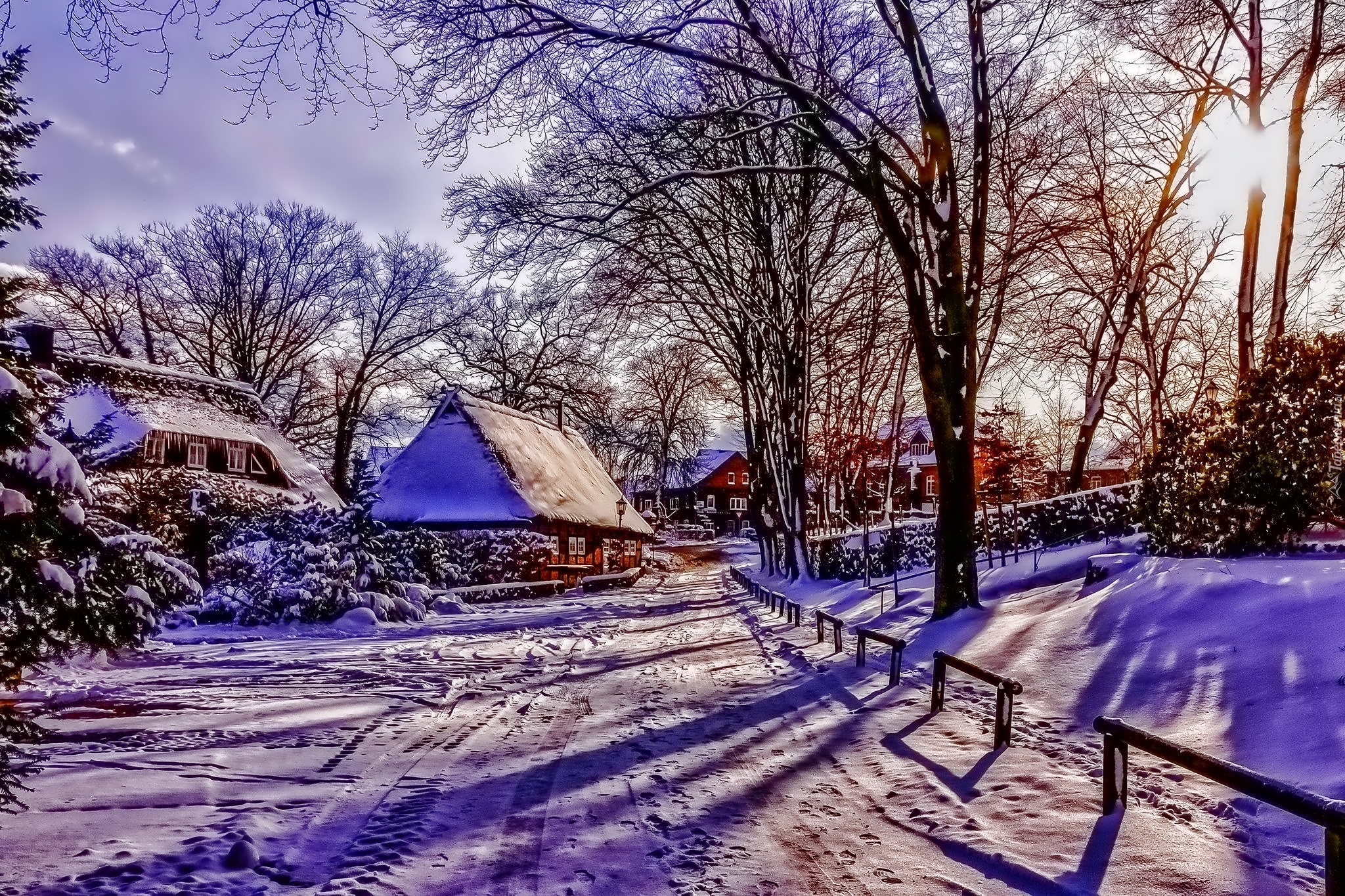 Edytor tapety: Zima, Droga, Domy, Wieś