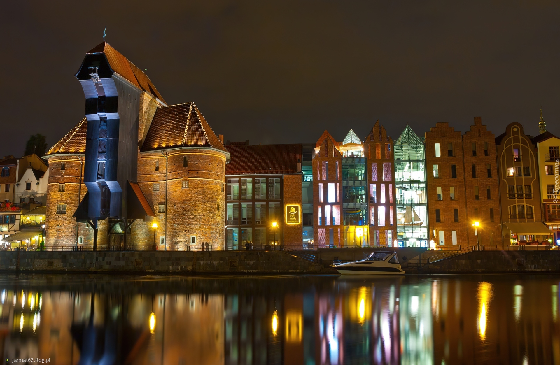 Edytor tapety: Polska, Gdańsk, Żuraw Gdański, Port, Noc, Zasbytek