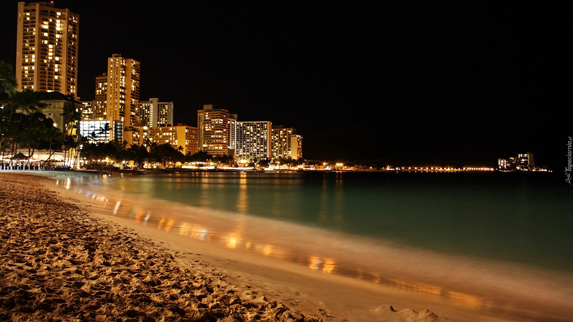Edytor tapety: Honolulu, Nocą, Plaża, Waikiki