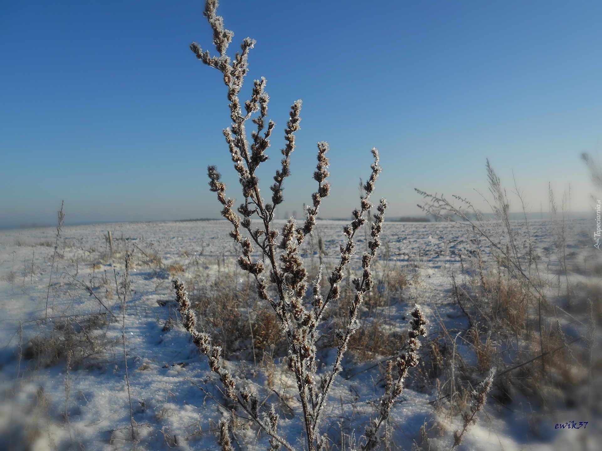Edytor tapety: Polna, Trawa, Mróz, Śnieg