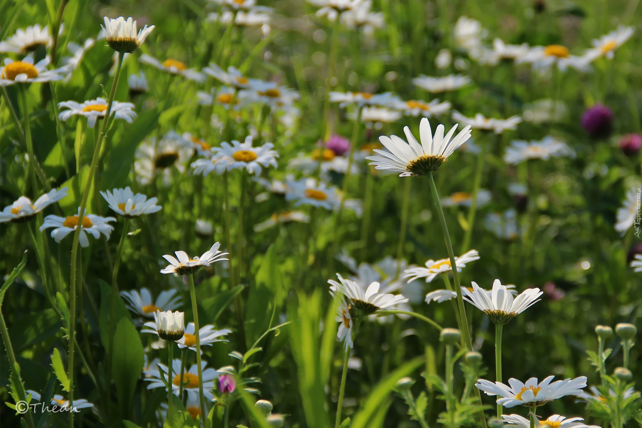 Edytor tapety: Margerytki, Białe, Kwiaty, Łąka