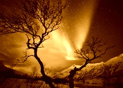 Edytor tapety: Zorza, Polarna, Drzewo, Śnieg, Noc
