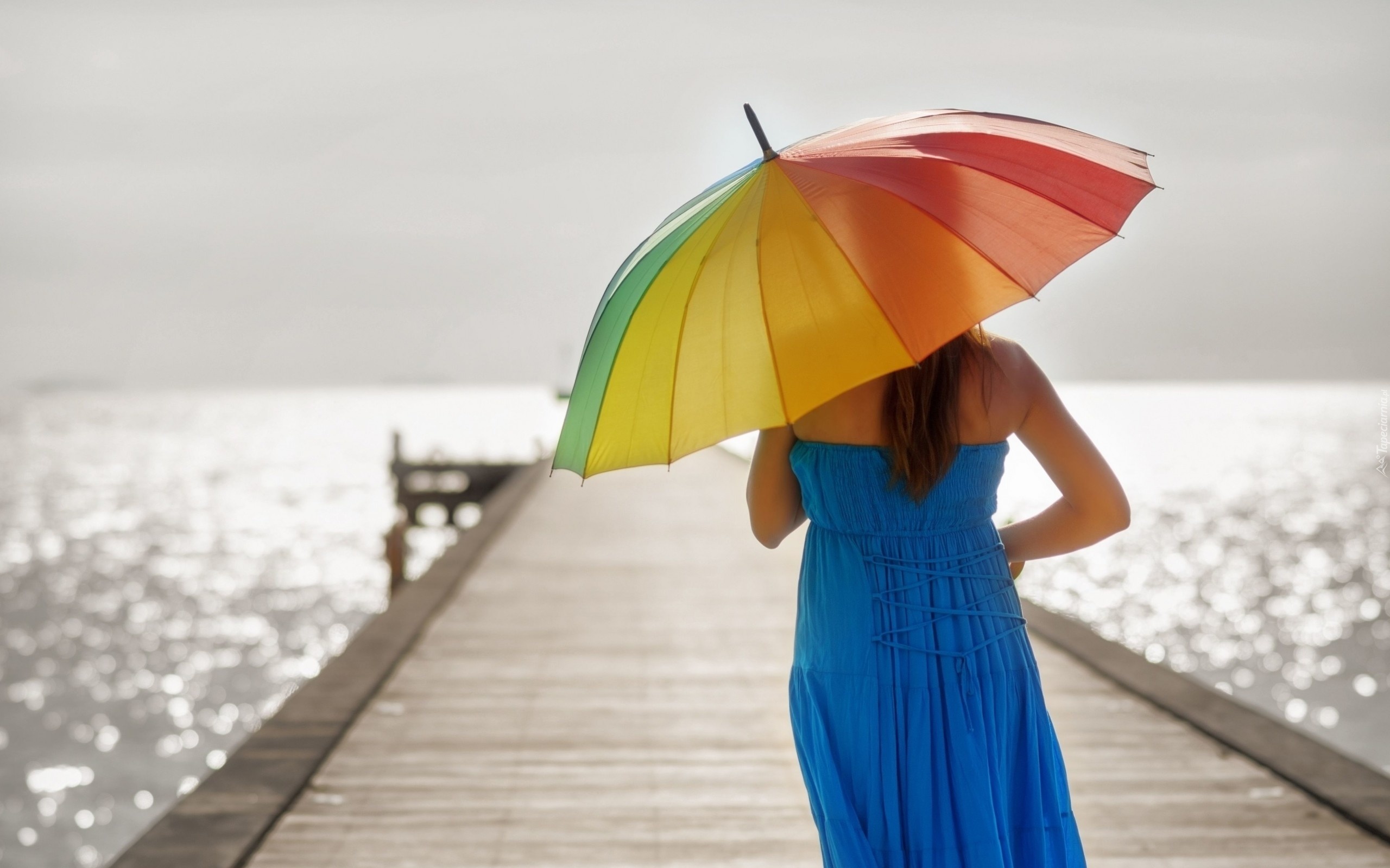 Edytor tapety: Kobieta, Lato, Parasol, Molo, Morze