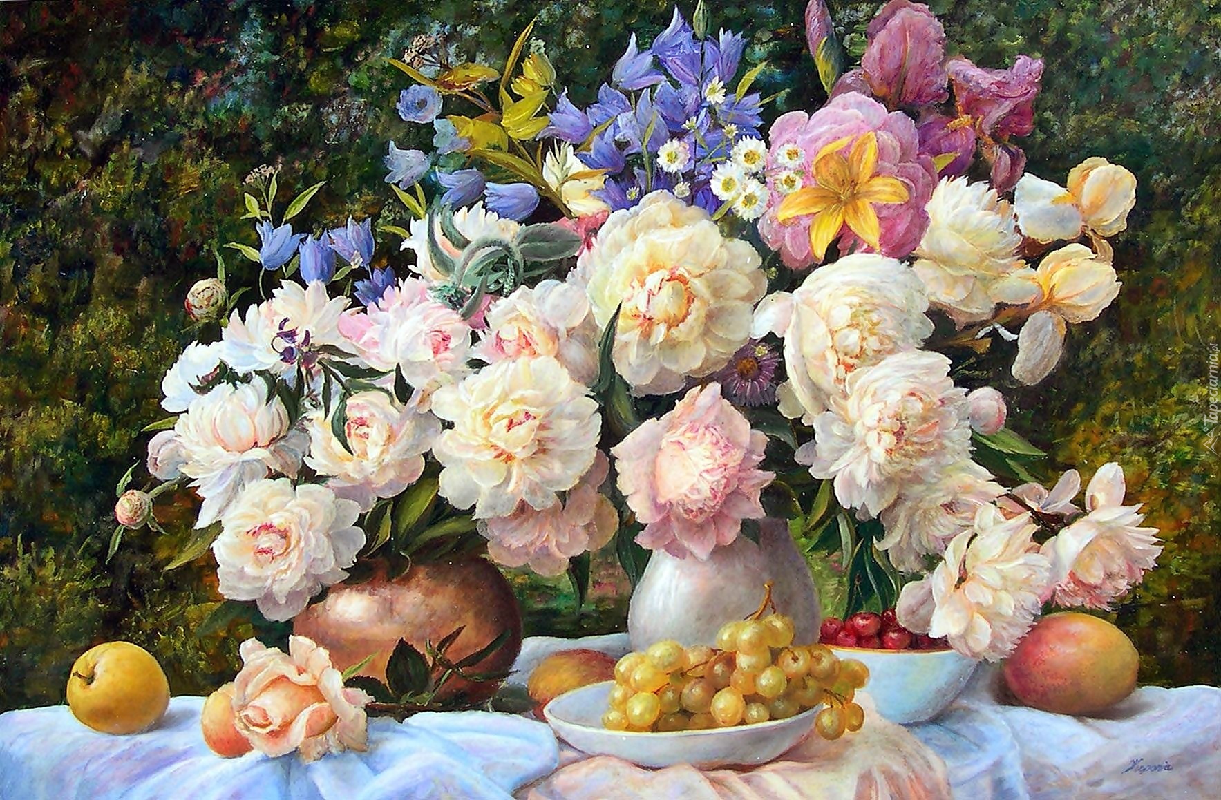 Edytor tapety: Zbigniew, Kopania, Wazon, Bukiet, Kwiatów, Owoce