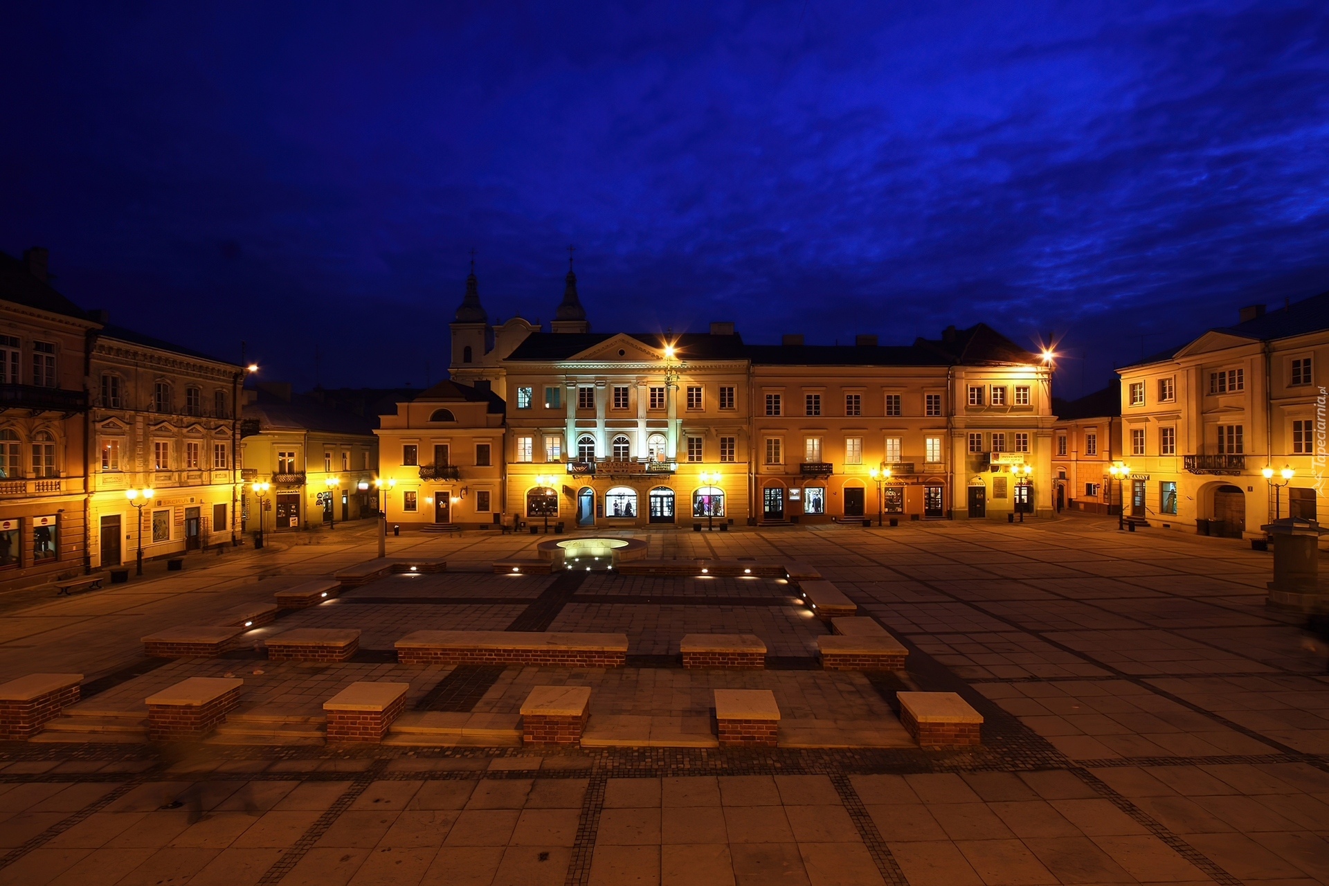 Edytor tapety: Piotrków Trybunalski, Stare Miasto, Noc, Polska, Rynek Trybunalski