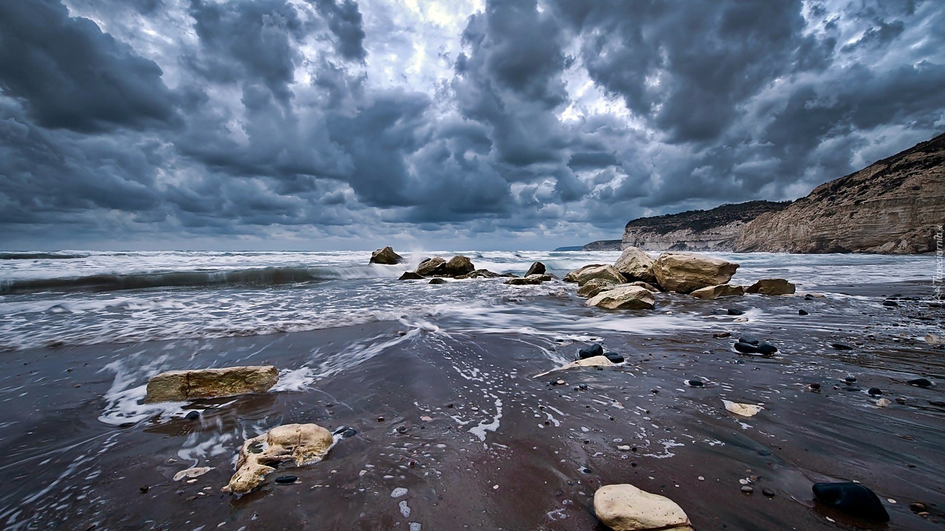 Edytor tapety: Sztormowe, Chmury, Morze, Klify, Głazy