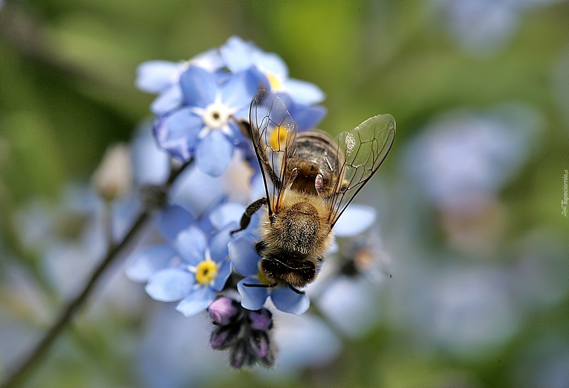 Edytor tapety: Niezapominajka, Pszczoła, Zbliżenie, Rozmycie