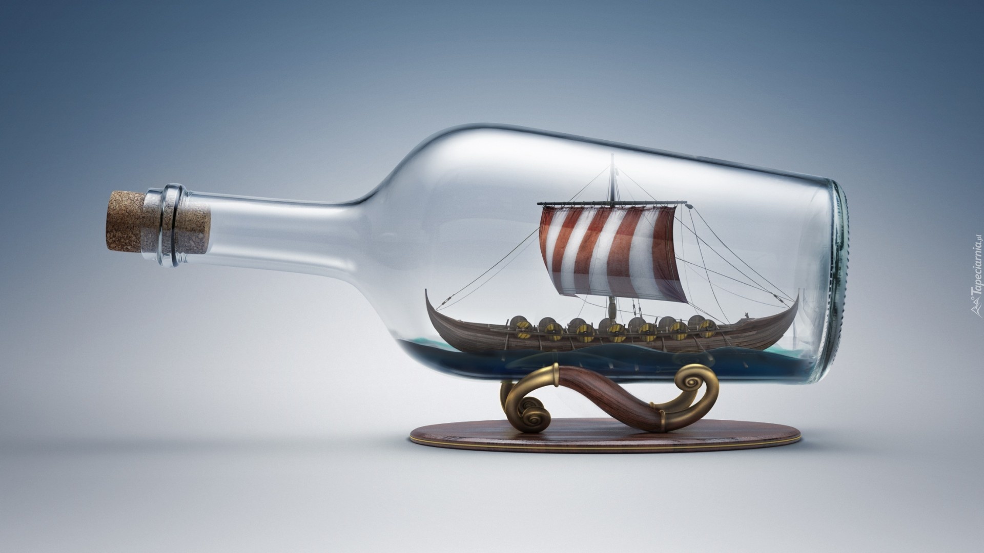 Edytor tapety: Butelka, Podstawka, Żaglowiec