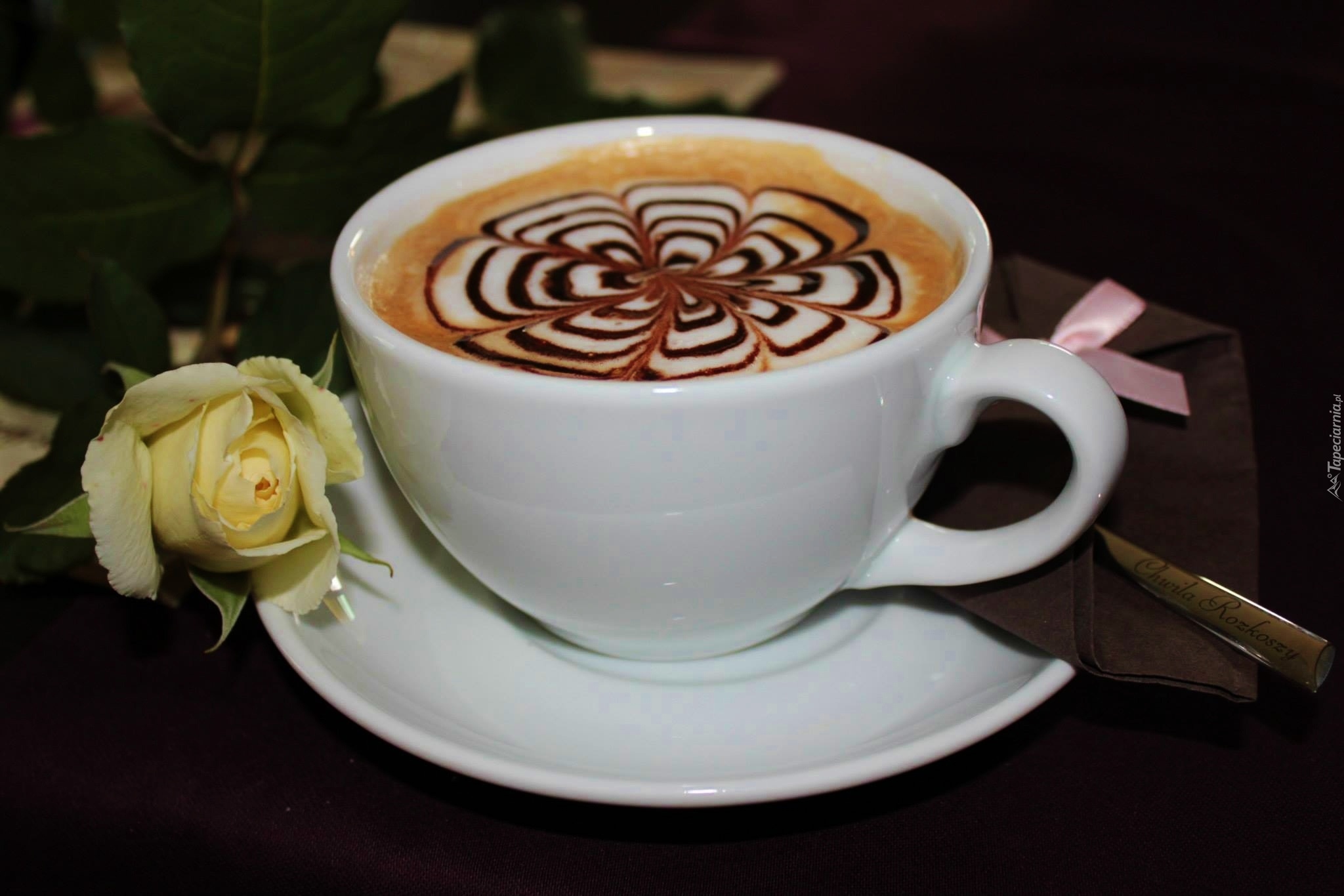 Edytor tapety: Kawa, Pianka, Filiżanka, Różyczka
