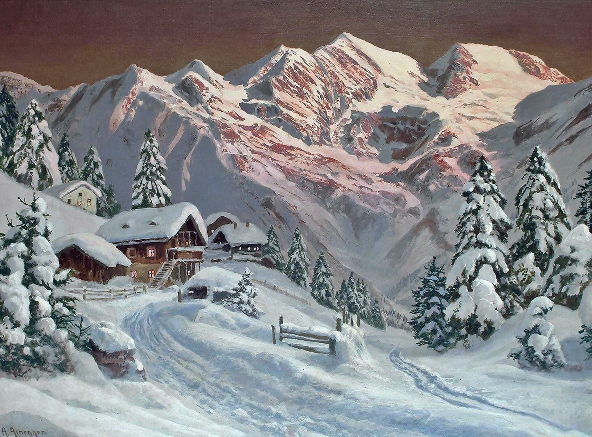 Edytor tapety: Alois, Arnegger, Zima, Góry, Domy, Świerki