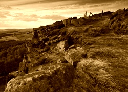 Edytor tapety: Widok, Góra, Skały, Trawy, Pola