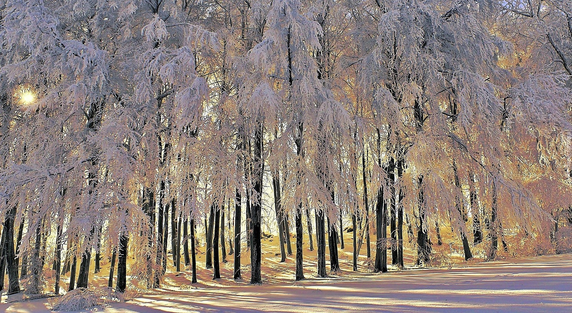 Edytor tapety: Droga, Ośnieżone, Drzewa, Światło, Cień