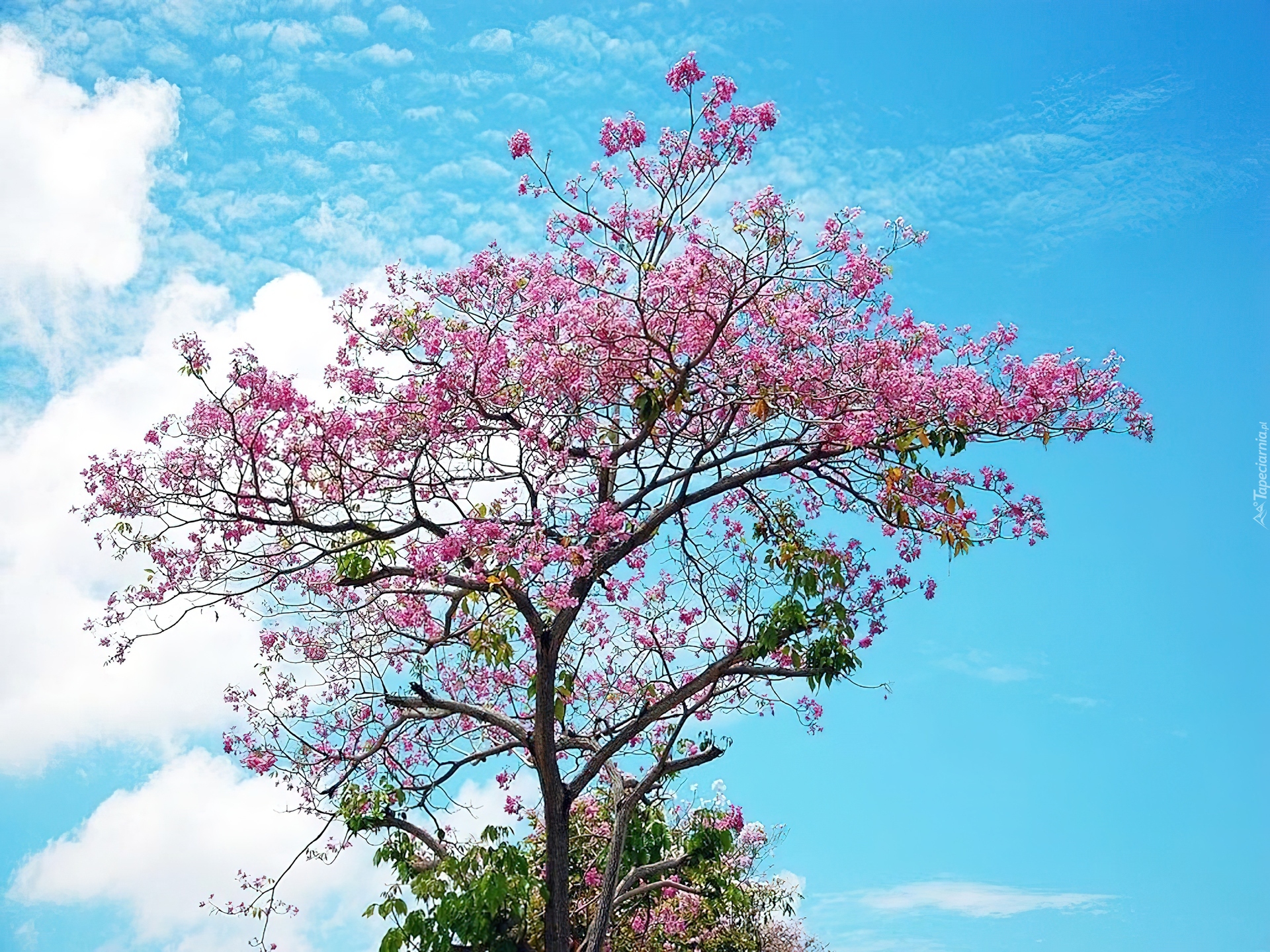 Edytor tapety: Obłoki, Kwitnące, Drzewo
